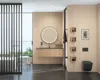 Yhtenäisen kokonaisuuden saavuttamiseksi valitse pyyhekuivain, joka vastaa suihkuseinän, peilin, hanan ja vetimien sävyä.