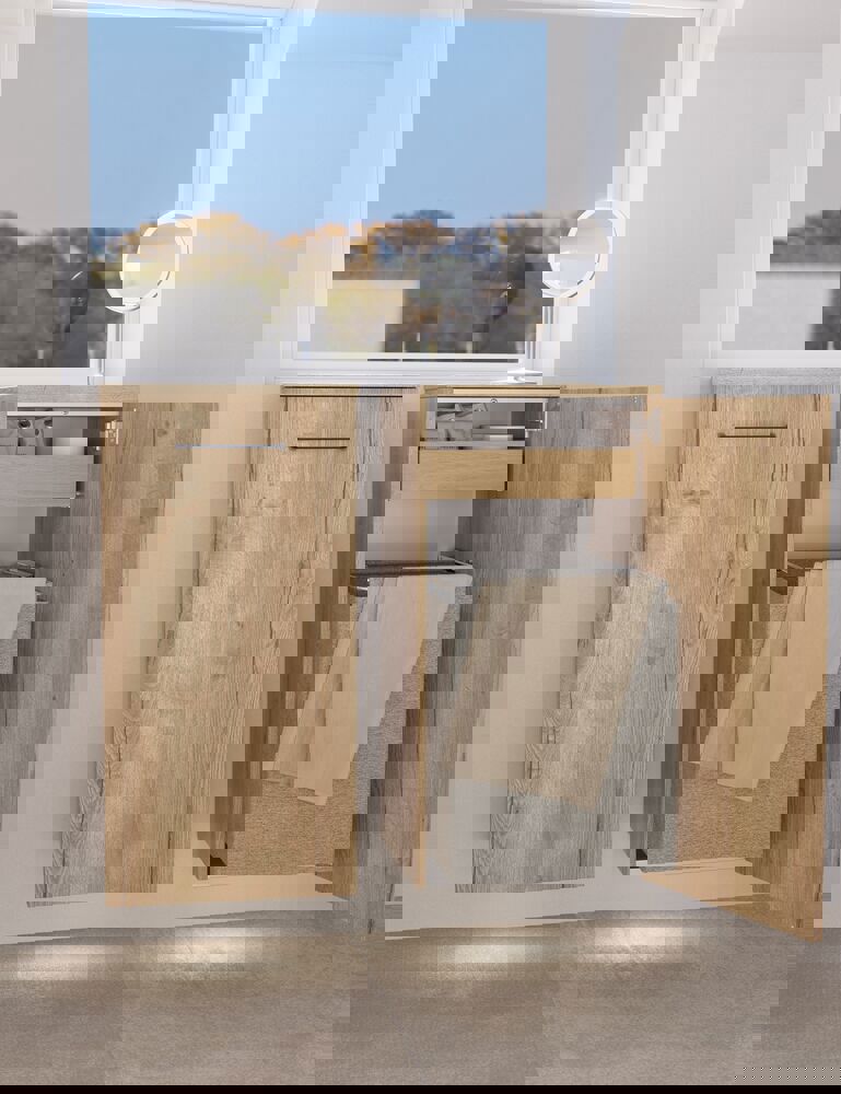 Puolikaapit, jossa on 1 ovi, versio A, integroidulla vetimellä, saranat vasemmalla