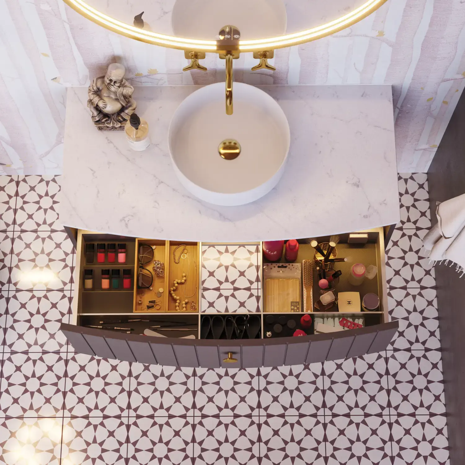 Allas säilytystilalla ei ole vain käytännöllinen – se luo tunnelman myös muulle kylpyhuoneelle ja voi antaa tilaan sitä jotain sekä esteettisesti että toiminnallisesti.