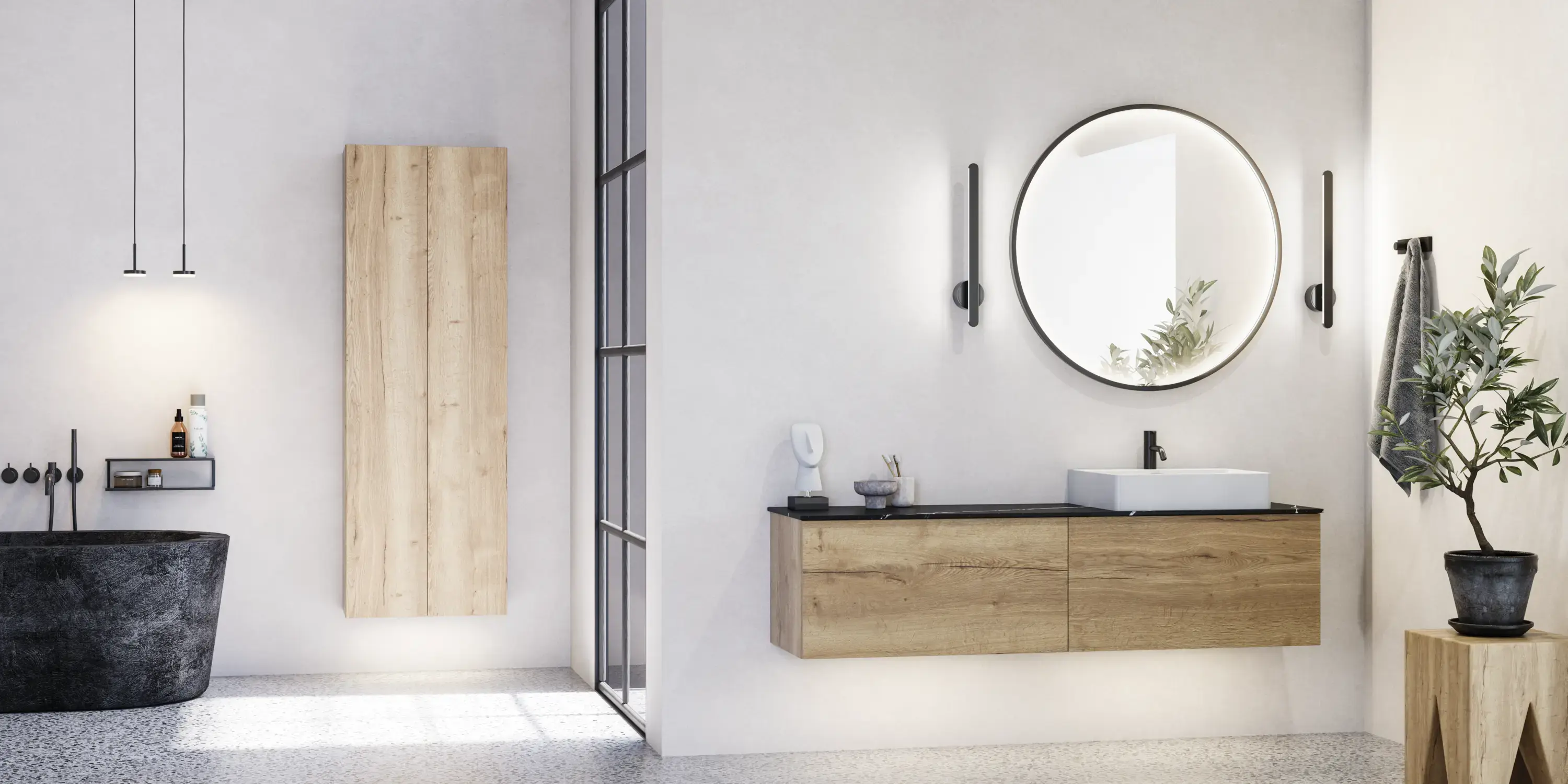 Vaikka kylpyhuoneesi ei olisikaan suuri, sisustusmahdollisuuksia on paljon ja tilaa riittää vielä sinulle itsellesikin.