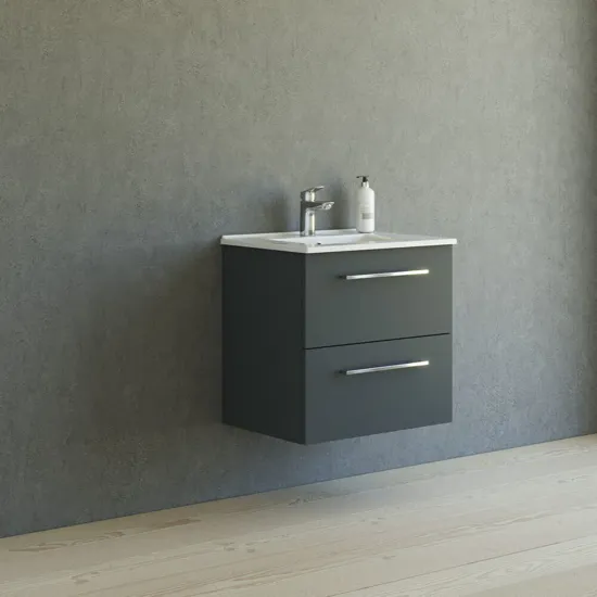 Kokemusta toiminnallisuudesta ja tyylistä 60 cm leveällä Mido+-työtasolla, joka on saatavana useissa eri väreissä. Kompakti muotoilu sopii täydellisesti pienempiin kylpyhuoneisiin säilytystilasta tinkimättä. Amber-pesuallas, jossa on tyylikäs, ohut työtaso ja suuri allas, on paitsi kaunis myös käytännöllinen. Saniteettiposliini on erittäin vahvaa ja kestävää, joten sen puhdistaminen on helppoa. Tilavat laatikot voidaan vetää kokonaan ulos, jolloin saat täyden yleiskuvan ja pääset helposti käsiksi tavaroihisi. Laatikot on varustettu soft-close-toiminnolla, joka sulkeutuu pehmeästi ja äänettömästi. Tyylikkäät kromatut Base-kahvat kuuluvat vakiovarusteisiin, mutta sinulla on mahdollisuus hankkia muita kahvoja oman tyylisi mukaan.
