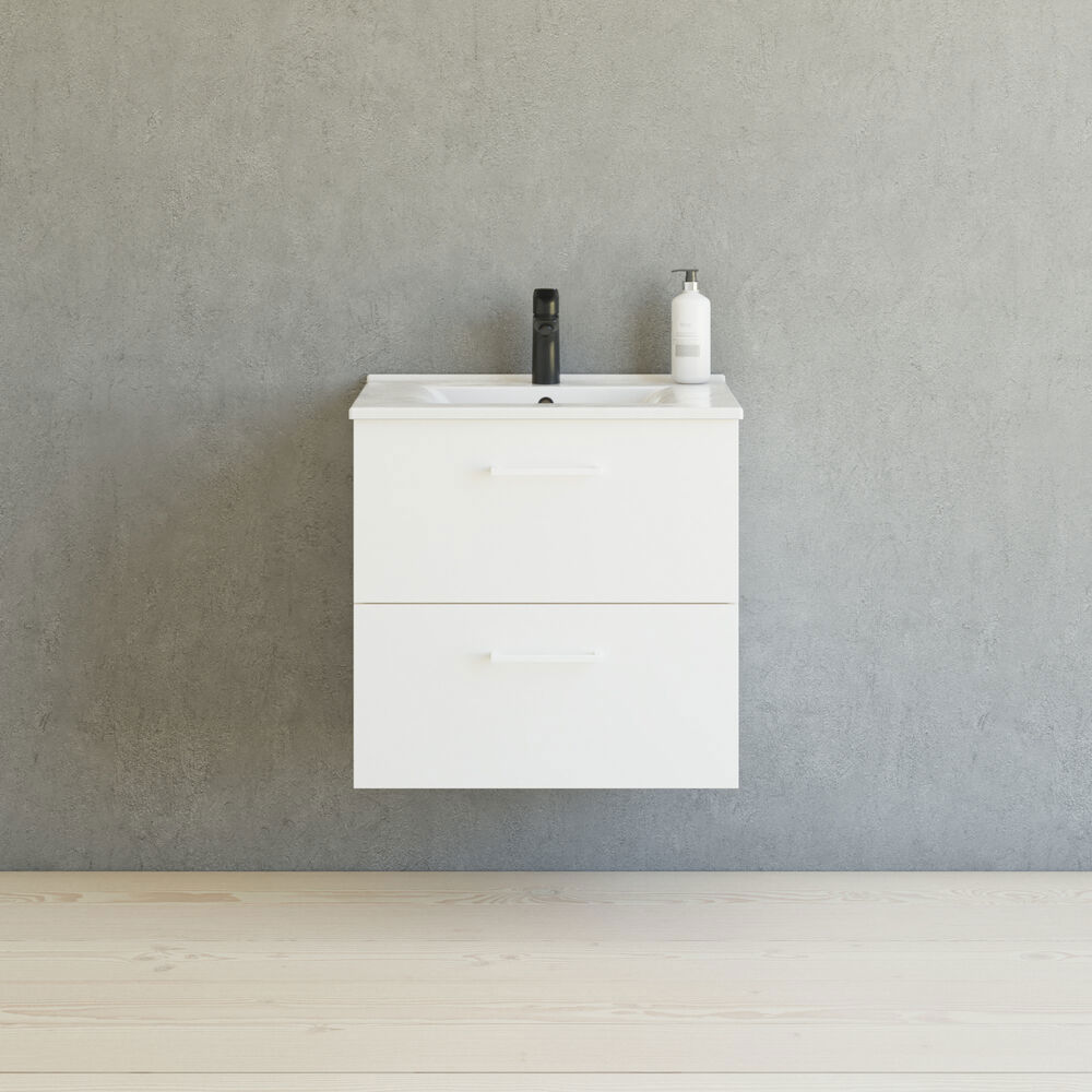 Kokemusta toiminnallisuudesta ja tyylistä 60 cm leveällä Mido+-työtasolla, joka on saatavana useissa eri väreissä. Kompakti muotoilu sopii täydellisesti pienempiin kylpyhuoneisiin säilytystilasta tinkimättä. Amber-pesuallas, jossa on tyylikäs, ohut työtaso ja suuri allas, on paitsi kaunis myös käytännöllinen. Saniteettiposliini on erittäin vahvaa ja kestävää, joten sen puhdistaminen on helppoa. Tilavat laatikot voidaan vetää kokonaan ulos, jolloin saat täyden yleiskuvan ja pääset helposti käsiksi tavaroihisi. Laatikot on varustettu soft-close-toiminnolla, joka sulkeutuu pehmeästi ja äänettömästi. Tyylikkäät kromatut Base-kahvat kuuluvat vakiovarusteisiin, mutta sinulla on mahdollisuus hankkia muita kahvoja oman tyylisi mukaan.