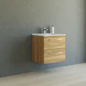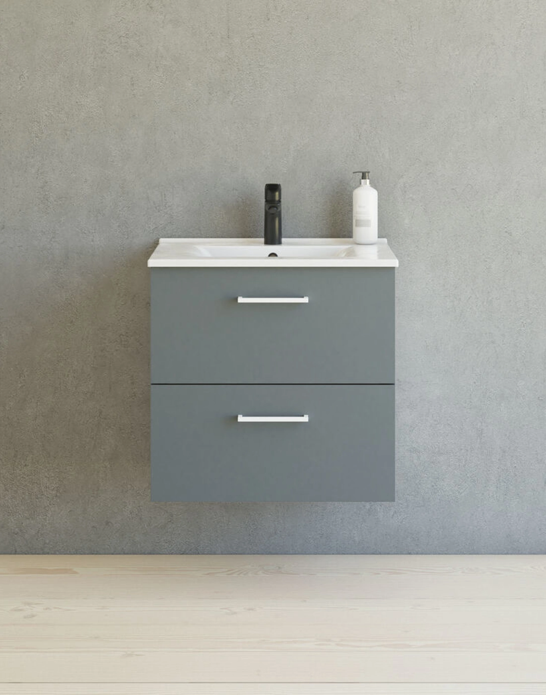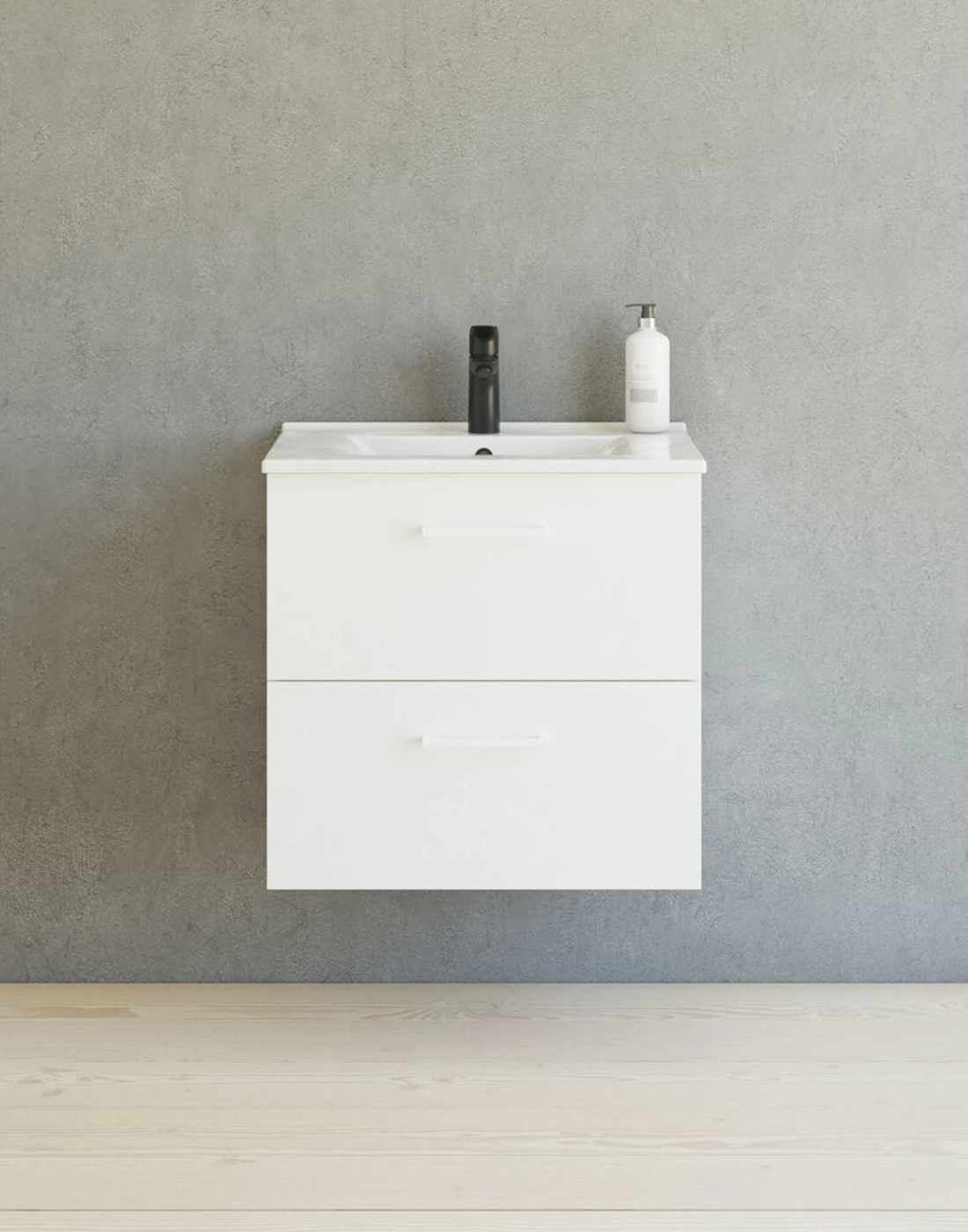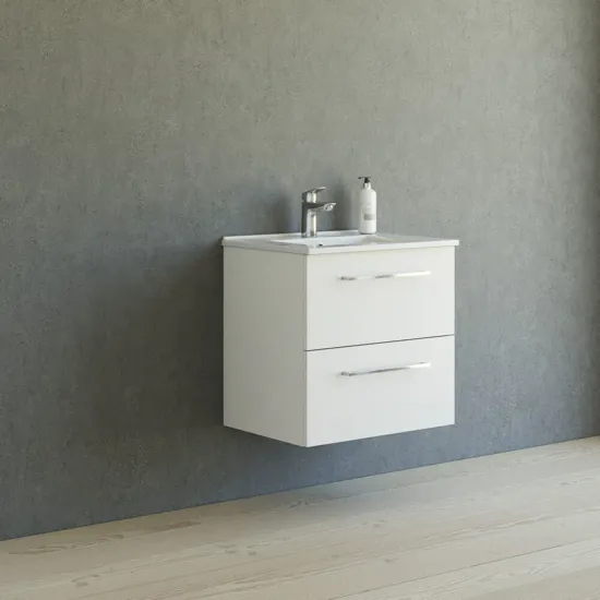 Kokemusta toiminnallisuudesta ja tyylistä 60 cm leveällä Mido+-työtasolla, joka on saatavana useissa eri väreissä. Kompakti muotoilu sopii täydellisesti pienempiin kylpyhuoneisiin säilytystilasta tinkimättä. Amber-pesuallas, jossa on tyylikäs, ohut työtaso ja suuri allas, on paitsi kaunis myös käytännöllinen. Saniteettiposliini on erittäin vahvaa ja kestävää, joten sen puhdistaminen on helppoa. Tilavat laatikot voidaan vetää kokonaan ulos, jolloin saat täyden yleiskuvan ja pääset helposti käsiksi tavaroihisi. Laatikot on varustettu soft-close-toiminnolla, joka sulkeutuu pehmeästi ja äänettömästi. Tyylikkäät kromatut Base-kahvat kuuluvat vakiovarusteisiin, mutta sinulla on mahdollisuus hankkia muita kahvoja oman tyylisi mukaan.
