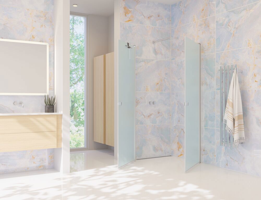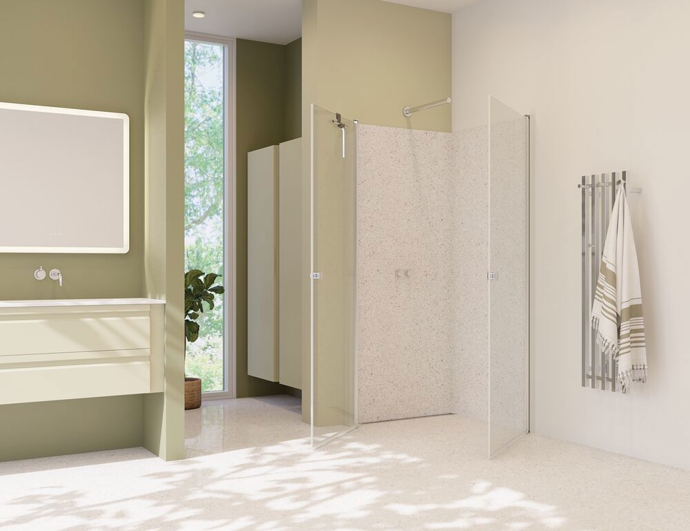 Nämä kääntyvät ovet tuovat kylpyhuoneeseesi sekä eleganssia että toiminnallisuutta. Ovet ovat erittäin käytännöllisiä ja käyttäjäystävällisiä, sillä ne voidaan avata sekä ulos- että sisäänpäin. Näin voit vapauttaa tilaa kylpyhuoneessasi silloin, kun suihku ei ole käytössä. Kääntöovet avautuvat ja sulkeutuvat pehmeästi ja äänettömästi kestävien saranoiden avulla, mikä takaa vaivattoman pääsyn suihkuun. Samalla ne muodostavat tehokkaan suojan, joka pitää veden suihkutilan sisällä ja pitää muun kylpyhuoneen kuivana ja puhtaana. Ovien karkaistu lasi on käsitelty EasyCare-käsittelyllä, mikä pidentää keinuovien kestävyyttä ja käyttöikää.