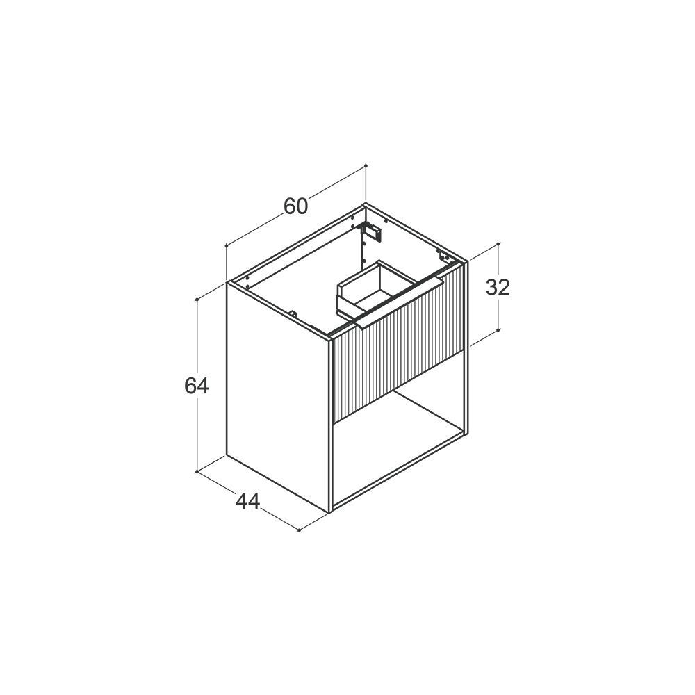 Allaskaapit, jossa on 1 laatikko, hyllyllä ja uritettu etuosa