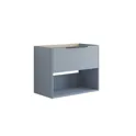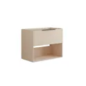 Tässä turhamaisuuskaapissa yhdistyvät molempien maailmojen parhaat puolet: käytännöllinen laatikko, avoin tila, jossa voit esitellä lempiesi ja raidallinen etuosa, joka antaa ainutlaatuisen ja tyylikkään ilmeen. Valitse väreistä valkoinen, hiekkainen tai vaaleansininen löytääksesi kylpyhuoneeseesi parhaiten sopivan. Kahva on valmiiksi asennettu, joten se on käyttövalmis.