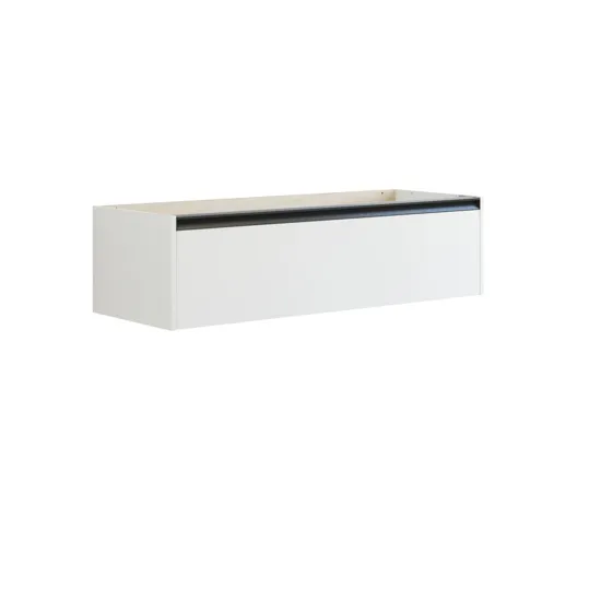 Muuta kylpyhuoneesi tyylikkääksi keitaaksi allaskaapilla, jossa on integroitu kahva. Tämä kaappi on varustettu yhdellä syvällä laatikolla, jonka korkeus on 32 cm, ja se tarjoaa optimaalista säilytystilaa olennaisille kylpyhuoneen tarvikkeillesi. Kahva on standardina musta, mikä tuo modernia kontrastia kylpyhuoneeseesi. Jos kuitenkin valitset allaskaapin haluamassasi väreissä, kahva värjätään samalla sävyllä, mikä luo harmonisen yhteyden. Minimalistinen muotoilu integroituine kahvoineen antaa puhtaan ja modernin ilmeen, joka sopii täydellisesti mihin tahansa nykyaikaiseen kylpyhuoneeseen. Se on paitsi toiminnallinen myös esteettinen lisä, joka tekee tilan järjestämisestä helppoa. Huomautus: Valinnaisen värin sisältävistä tuotteista peritään käynnistysmaksu (BI1). Se maksetaan kerran valinnaisväriä kohden tuotteiden lukumäärästä riippumatta. Muista lisätä kylpyhuonekalusteisiisi pieniä käytännöllisiä asioita, joista nautit päivittäin. Esimerkiksi valot laatikoihin ja kaappeihin, sisäänrakennetut pistorasiat ja kalusteiden alla olevat himmennettävät tunnistinvalot, jotka ohjaavat yöllisiä kylpyhuonekäyntejä. Vaihtoehdot tilataan samaan aikaan kalusteiden kanssa.