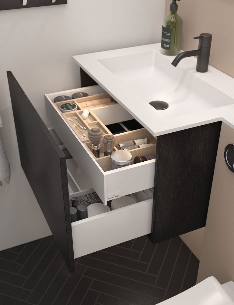 Rikastuta kylpyhuonettasi kauniilla yhdistelmällä eleganssia ja käytännöllisiä toimintoja tällä Dansani Calidris 1-laatikollisella allaskaapilla. Tämä minimalistisesti ja puhtailla linjoilla suunniteltu allaskaappi lisää hienostunutta estetiikkaa kylpyhuoneesi sisustukseen. 40 cm syvässä allaskaapissa on tilaa sekä tyylille että säilytystilalle. Tilavan laatikon avulla voit järjestää ja säilyttää kaikki kylpyhuoneen tarvikkeet tyylikkäästi. Tilava laatikko antaa sinulle mahdollisuuden järjestää ja säilyttää kaikki kylpyhuoneen tarvikkeet tyylikkäällä tavalla. Huomautus: Tammella ja valinnaisella värillä varustetuista tuotteista peritään käynnistysmaksu (BI1). Maksetaan kerran tammea ja valinnaista väriä kohti tuotteiden lukumäärästä riippumatta. Muista lisätä kylpyhuonekalusteisiisi pieniä käytännöllisiä asioita, joista nautit päivittäin. Esimerkiksi valot laatikoihin ja kaappeihin, sisäänrakennetut pistorasiat ja kalusteiden alla olevat himmennettävät tunnistinvalot, jotka ohjaavat yöllisiä kylpyhuonekäyntejä. Vaihtoehdot tilataan samaan aikaan kalusteiden kanssa.