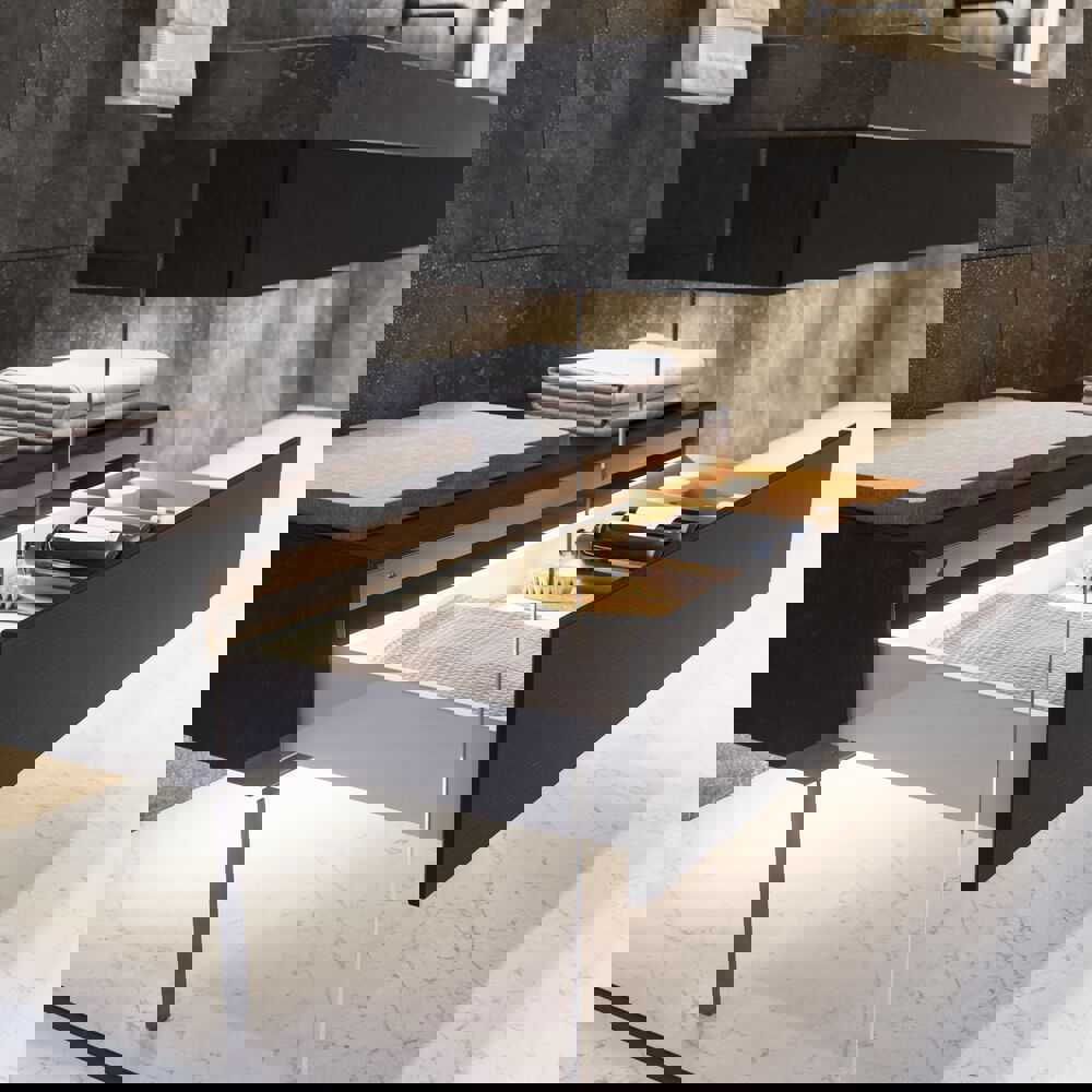 Dansani Calidris 20 cm korkeissa allaskaapeissa yhdistyvät kauniilla tavalla modernius ja käytännöllinen muotoilu. Nämä tyylikkäät allaskaapit tarjoavat minimalistista estetiikkaa ja ne ovat ihanteellisia moderneihin kylpyhuoneisiin. Näissä yhden laatikon allaskaapeissa yhdistyvät toiminnallisuus ja tyylikäs ulkoasu. Puhtaat linjat luovat ajatonta eleganssia, kun taas laatikko tarjoaa huomaamatonta säilytystilaa ja pitää kylpyhuoneen järjestyksessä.  Dansani Calidris 20 cm korkeat allaskaapit ovat ihanteellinen valinta niille, jotka etsivät modernia ja tyylikästä ilmettä kylpyhuoneeseen. Niiden yksinkertainen muotoilu ja toiminnalliset ominaisuudet tekevät niistä täydellisen lisäyksen mihin tahansa moderniin kylpyhuoneen sisustukseen, jossa tyyli ja toimivuus kulkevat käsi kädessä. Huomautus: Tammella ja valinnaisella värillä varustetuista tuotteista peritään käynnistysmaksu (BI1). Maksetaan kerran tammea ja valinnaista väriä kohti tuotteiden lukumäärästä riippumatta. Muista lisätä kylpyhuonekalusteisiisi pieniä käytännöllisiä asioita, joista nautit päivittäin. Esimerkiksi valot laatikoihin ja kaappeihin, sisäänrakennetut pistorasiat ja kalusteiden alla olevat himmennettävät tunnistinvalot, jotka ohjaavat yöllisiä kylpyhuonekäyntejä. Vaihtoehdot tilataan samaan aikaan kalusteiden kanssa.