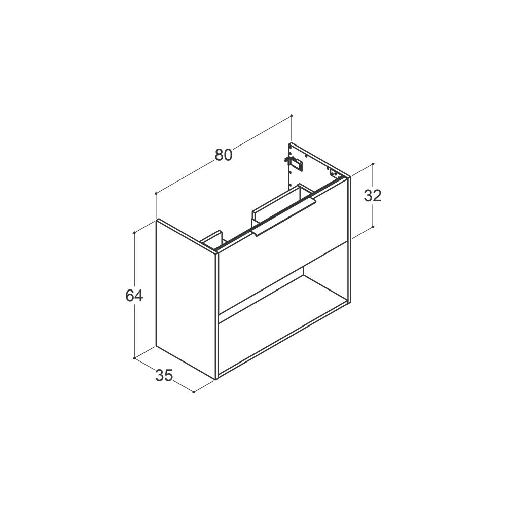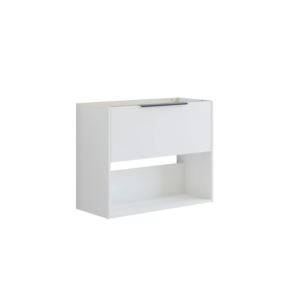 Tilava allaskaappi, jossa on yksi suuri laatikko - täydellinen niille, jotka haluavat yleiskuvan ja toiminnallisuuden yhdessä ratkaisussa. Leveä laatikko kulkee säädettävillä liukukiskoilla ja sulkeutuu pehmeästi ja äänettömästi soft-close-järjestelmällä. Saat sekä tilaa että estetiikkaa samassa paketissa. Mukana tuleva musta kahva korostaa kalusteen yksinkertaisia linjoja ja antaa modernin viimeistelyn. Voit valita ruskean tammen luonnollisen lämpimän sävyn tai pehmeän vaalean hiekkamattasävyn.