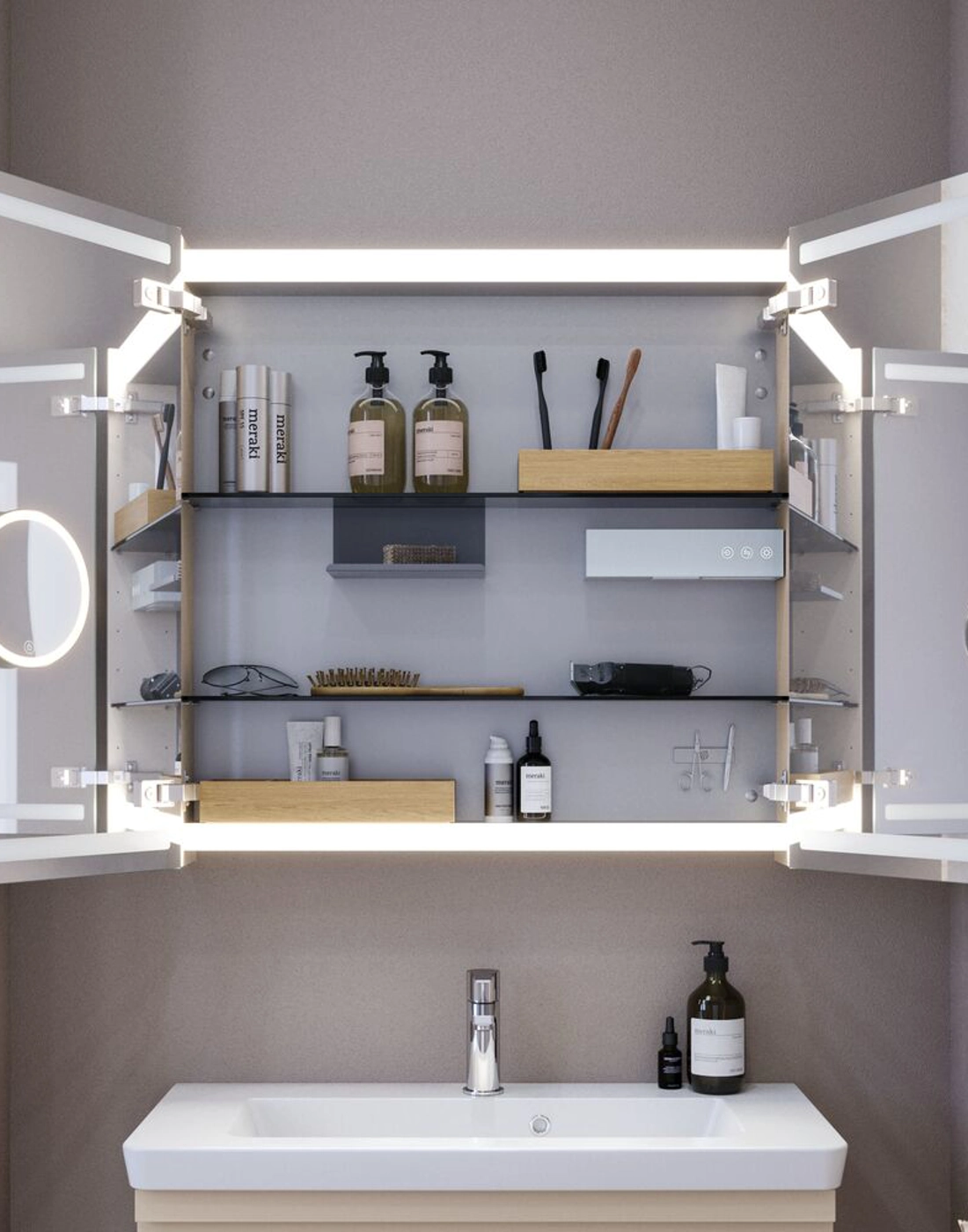 Allaskaappi laatikoilla on ihanteellinen ratkaisu kylpyhuoneeseesi. Vain 35 cm syvyys tekee siitä täydellisen pieniin tiloihin. Korkea ala-laatikko tarjoaa lisävarastotilaa suuremmille kylpyhuoneen esineille, joten voit helposti pitää kaiken järjestyksessä. Integroitu kahva yhdistää toiminnallisuuden ja tyylikkään muotoilun, mahdollistaen tavaroidesi elegantin ja käytännöllisen järjestämisen. Huomautus: Valinnaisen värin sisältävistä tuotteista peritään käynnistysmaksu (BI1). Se maksetaan kerran valinnaisväriä kohden tuotteiden lukumäärästä riippumatta. Muista lisätä kylpyhuonekalusteisiisi pieniä käytännöllisiä asioita, joista nautit päivittäin. Esimerkiksi valot laatikoihin ja kaappeihin, sisäänrakennetut pistorasiat ja kalusteiden alla olevat himmennettävät tunnistinvalot, jotka ohjaavat yöllisiä kylpyhuonekäyntejä. Vaihtoehdot tilataan samaan aikaan kalusteiden kanssa.