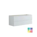 Allaskaappi, jossa on 2 laatikkoa, voi helposti päivittää kylpyhuoneesi. Tämä tyylikäs allaskaappi on 48 cm korkea ja 44 cm syvä, mikä tekee siitä täydellisen tavaroidesi järjestämiseen. Integroitu kahvaratkaisu varmistaa helpon pääsyn sisältöön ja lisää modernin vivahteen. Valitse eri väreistä, jotta voit löytää tyylillesi parhaiten sopivan vaihtoehdon. Kaappi tarjoaa älykästä säilytystilaa kylpyhuonetarvikkeillesi, joten voit pitää kaiken järjestyksessä vaivattomasti. Allaskaappi, jossa on 2 laatikkoa, tarjoaa sekä toiminnallisuutta että eleganssia, ja se on kaunis lisä kylpyhuoneeseesi. Tee tilastasi järjestelmällisempi ja tyylikkäämpi tämän upean allaskaapin avulla. Huomautus: Valinnaisen värin sisältävistä tuotteista peritään käynnistysmaksu (BI1). Se maksetaan kerran valinnaisväriä kohden tuotteiden lukumäärästä riippumatta. Muista lisätä kylpyhuonekalusteisiisi pieniä käytännöllisiä asioita, joista nautit päivittäin. Esimerkiksi valot laatikoihin ja kaappeihin, sisäänrakennetut pistorasiat ja kalusteiden alla olevat himmennettävät tunnistinvalot, jotka ohjaavat yöllisiä kylpyhuonekäyntejä. Vaihtoehdot tilataan samaan aikaan kalusteiden kanssa.