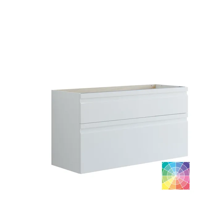 Päivitä kylpyhuoneesi allaskaapilla, jossa on 2 laatikkoa. Tämä tyylikäs kaappi on 64 cm korkea ja siinä on ylimääräinen korkea alalaatikko, joka tarjoaa enemmän säilytystilaa. Integroitu kahvaratkaisu varmistaa helpon pääsyn laatikoihin ja lisää modernin ilmeen. Valitse eri väreistä räätälöidäksesi kaappi omaan tyyliisi. Tämän allaskaapin avulla voit helposti järjestää kylpyhuonetarvikkeesi ja pitää kaiken siistinä. Allaskaappi, jossa on 2 laatikkoa, tarjoaa sekä käytännöllistä toimivuutta että kauniin lisän kylpyhuoneeseesi. Tee tilastasi järjestelmällisempi ja tyylikkäämpi tämän upean allaskaapin avulla. Huomautus: Valinnaisen värin sisältävistä tuotteista peritään käynnistysmaksu (BI1). Se maksetaan kerran valinnaisväriä kohden tuotteiden lukumäärästä riippumatta. Muista lisätä kylpyhuonekalusteisiisi pieniä käytännöllisiä asioita, joista nautit päivittäin. Esimerkiksi valot laatikoihin ja kaappeihin, sisäänrakennetut pistorasiat ja kalusteiden alla olevat himmennettävät tunnistinvalot, jotka ohjaavat yöllisiä kylpyhuonekäyntejä. Vaihtoehdot tilataan samaan aikaan kalusteiden kanssa.