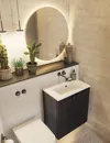 Anna kylpyhuoneellesi modernia ilmettä allaskaapeilla, joissa on integroitu kahva. Kaapissa on kaksi syvää, 32 cm korkeaa laatikkoa, jotka tarjoavat reilusti säilytystilaa päivittäisille tarvikkeillesi. Vakiona kahva on musta, mikä luo tyylikkään kontrastin, mutta jos valitset allaskaapit valinnaisessa värissä, kahva mukautuu harmonisesti kaapin sävyyn. Tämä minimalistinen muotoilu luo elegantin tunnelman ja helpottaa kylpyhuoneen järjestyksen ylläpitämistä. Huomautus: Valinnaisen värin sisältävistä tuotteista peritään käynnistysmaksu (BI1). Se maksetaan kerran valinnaisväriä kohden tuotteiden lukumäärästä riippumatta. Muista lisätä kylpyhuonekalusteisiisi pieniä käytännöllisiä asioita, joista nautit päivittäin. Esimerkiksi valot laatikoihin ja kaappeihin, sisäänrakennetut pistorasiat ja kalusteiden alla olevat himmennettävät tunnistinvalot, jotka ohjaavat yöllisiä kylpyhuonekäyntejä. Vaihtoehdot tilataan samaan aikaan kalusteiden kanssa.