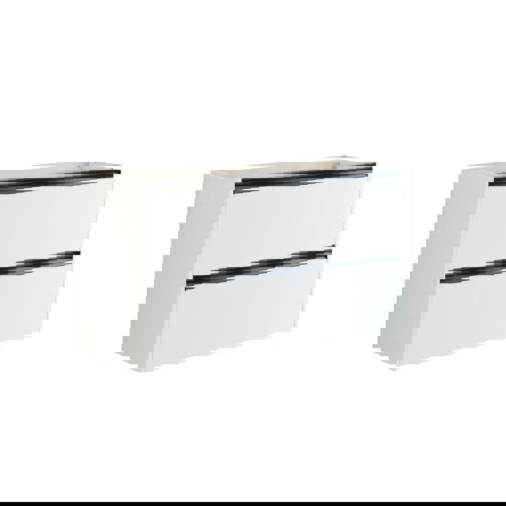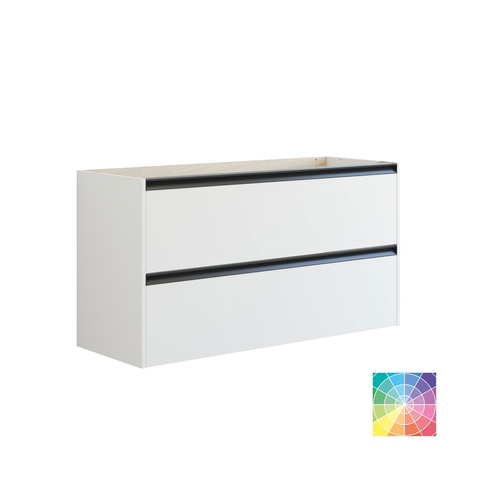 Anna kylpyhuoneellesi modernia ilmettä allaskaapeilla, joissa on integroitu kahva. Kaapissa on kaksi syvää, 32 cm korkeaa laatikkoa, jotka tarjoavat reilusti säilytystilaa päivittäisille tarvikkeillesi. Vakiona kahva on musta, mikä luo tyylikkään kontrastin, mutta jos valitset allaskaapit valinnaisessa värissä, kahva mukautuu harmonisesti kaapin sävyyn. Tämä minimalistinen muotoilu luo elegantin tunnelman ja helpottaa kylpyhuoneen järjestyksen ylläpitämistä. Huomautus: Valinnaisen värin sisältävistä tuotteista peritään käynnistysmaksu (BI1). Se maksetaan kerran valinnaisväriä kohden tuotteiden lukumäärästä riippumatta. Muista lisätä kylpyhuonekalusteisiisi pieniä käytännöllisiä asioita, joista nautit päivittäin. Esimerkiksi valot laatikoihin ja kaappeihin, sisäänrakennetut pistorasiat ja kalusteiden alla olevat himmennettävät tunnistinvalot, jotka ohjaavat yöllisiä kylpyhuonekäyntejä. Vaihtoehdot tilataan samaan aikaan kalusteiden kanssa.