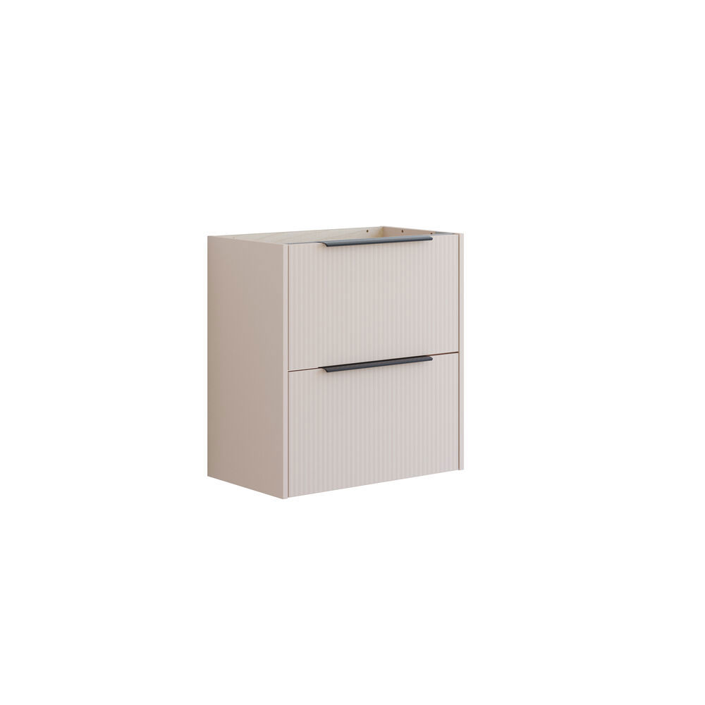 Modernisti muotoiltu monipuolinen turhamaisuuskaappi, jossa on kaksi täysin ulosvedettävää laatikkoa, joiden avulla on helppo pysyä järjestyksessä. Pehmeästi sulkeutuvat ja laadukkaat liukukiskot takaavat hiljaisen ja mukavan käyttökokemuksen joka kerta. Raidallinen valkoinen mattapintainen sisustus antaa kaapille kevyen, kuvioidun ilmeen, jossa on pohjoismaista luonnetta, ja mukana tuleva musta kahva lisää terävän visuaalisen yksityiskohdan. Täydellinen valinta tyylitietoiseen kylpyhuoneeseen.