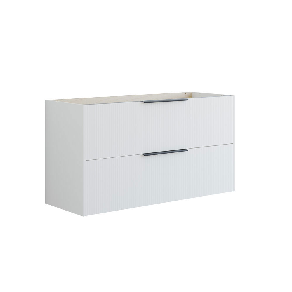 Tämässä turhamaisuuskaapissa yhdistyvät toiminnallisuus ja tyyli, sillä siinä on 2 tilavaa laatikkoa ja tyylikäs raidallinen etuosa. Saatavana valkoisena, hiekanvärisenä tai vaaleansinisenä, tämä kaappi antaa kylpyhuoneellesi modernin ja ainutlaatuisen ilmeen. Laatikot tarjoavat runsaasti säilytystilaa, ja kahvat on asennettu ja käyttövalmiina.