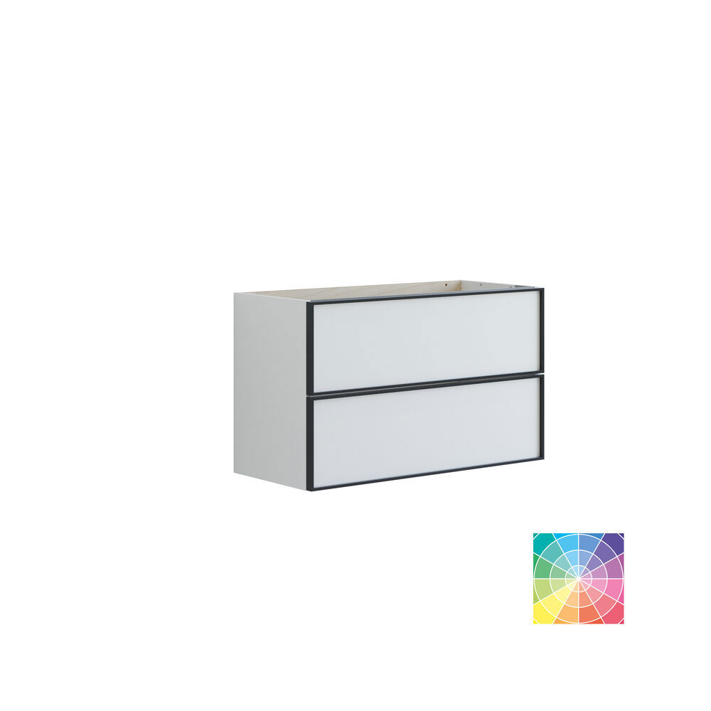 Päivitä kylpyhuoneesi allaskaapilla, jossa on 2 tilavaa laatikkoa. Vain 35 cm syvyys tarjoaa tilaa säästävän ratkaisun ilman kompromisseja säilytystilan suhteen. Laatikkojen ympärillä oleva musta alumiinikehys tuo kaapille eksklusiivisen yksityiskohdan, joka antaa huoneelle tyyliä ja särmää. Valitsemastasi väristä riippumatta tämä allaskaappi tuo kylpyhuoneeseesi eleganssia ja käytännöllistä säilytystilaa. Huomautus: Valinnaisen värin sisältävistä tuotteista peritään käynnistysmaksu (BI1). Se maksetaan kerran valinnaisväriä kohden tuotteiden lukumäärästä riippumatta. Muista lisätä kylpyhuonekalusteisiisi pieniä käytännöllisiä asioita, joista nautit päivittäin. Esimerkiksi valot laatikoihin ja kaappeihin, sisäänrakennetut pistorasiat ja kalusteiden alla olevat himmennettävät tunnistinvalot, jotka ohjaavat yöllisiä kylpyhuonekäyntejä. Vaihtoehdot tilataan samaan aikaan kalusteiden kanssa.