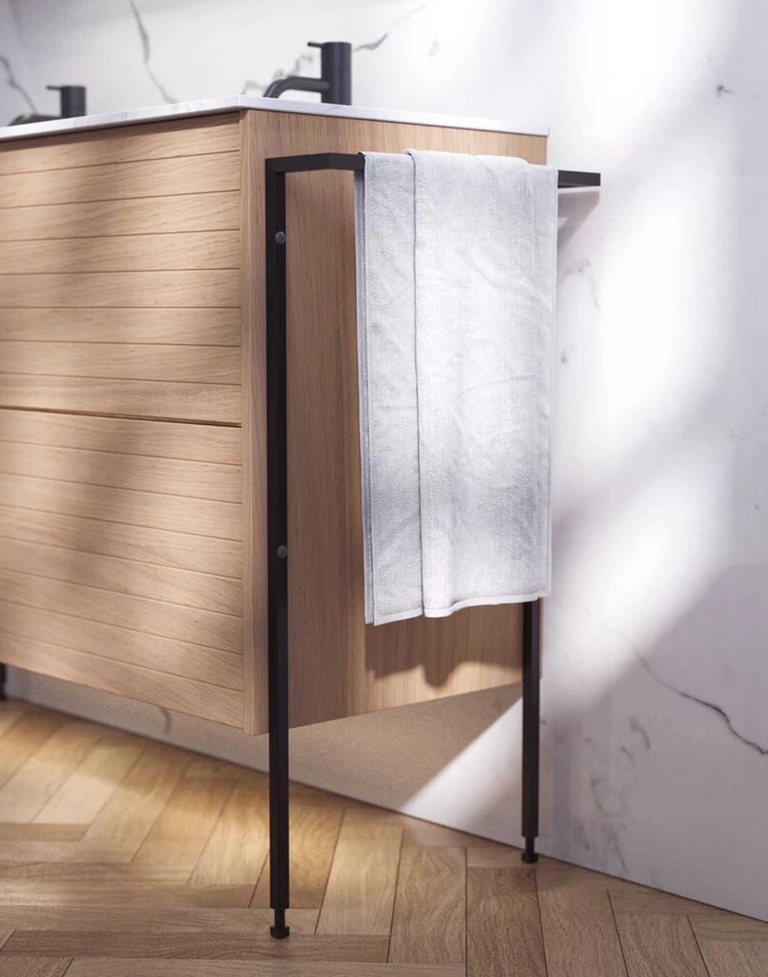 Luo ainutlaatuinen tyyli kylpyhuoneeseesi allaskaapeilla, joissa on uritettu etuosa. Kahdella 32 cm korkealla laatikolla saat optimaalisen säilytystilan kylpyhuonetarvikkeillesi. Uritettu etuosa tuo erottuvan ja modernin ilmeen, joka korostaa kylpyhuoneen persoonallisuutta. Tämä kaappi yhdistää käytännöllisyyden ja estetiikan, mikä tekee siitä ihanteellisen ratkaisun niille, jotka haluavat kylpyhuoneestaan sekä käytännöllisen että tyylikkään. Muista lisätä kylpyhuonekalusteisiisi pieniä käytännöllisiä asioita, joista nautit päivittäin. Esimerkiksi valot laatikoihin ja kaappeihin, sisäänrakennetut pistorasiat ja kalusteiden alla olevat himmennettävät tunnistinvalot, jotka ohjaavat yöllisiä kylpyhuonekäyntejä. Vaihtoehdot tilataan samaan aikaan kalusteiden kanssa.