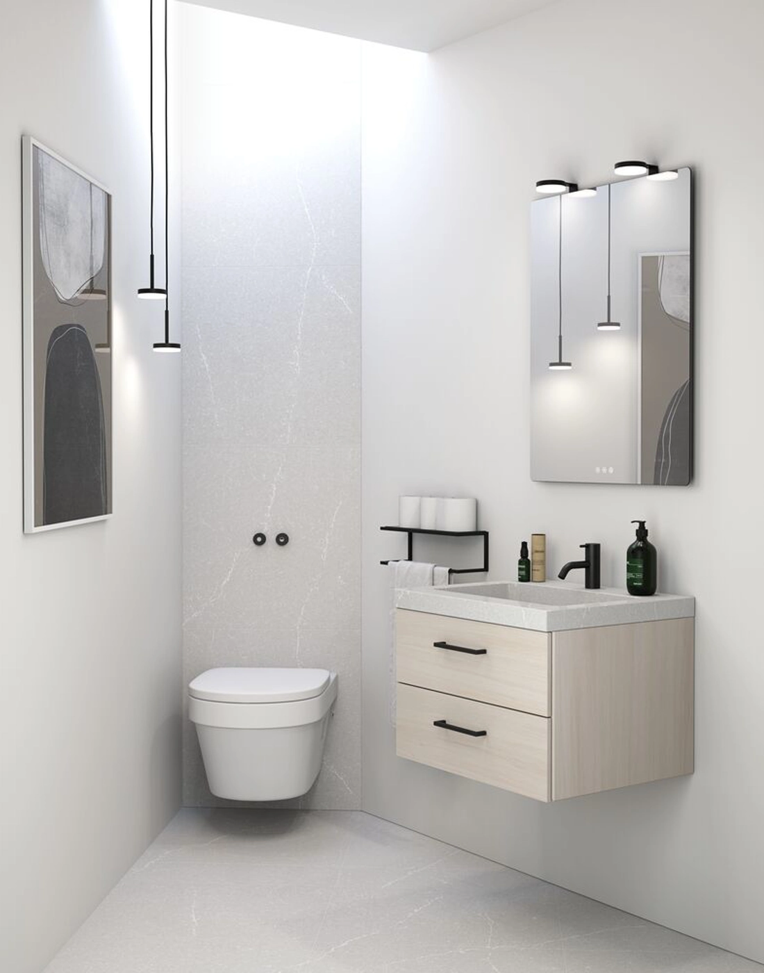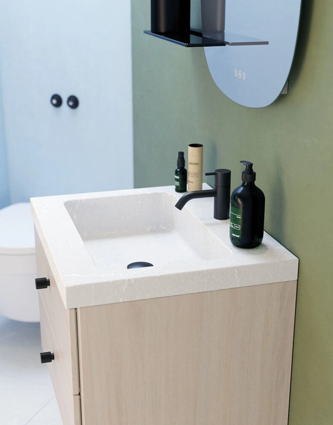 Dansani Calidris 2-laatikollinen allaskaappi on kaunis yhdistelmä tyyliä ja toiminnallisuutta kylpyhuoneeseesi. Allaskaapin minimalistinen muotoilu ja selkeät linjat lisäävät hienostunutta estetiikkaa kylpyhuoneesi ympäristöön. Kaksi tilavaa laatikkoa tarjoavat käytännöllistä säilytystilaa, mutta niiden avulla voit myös pitää kylpyhuoneesi siistinä ja järjestyksessä. Dansani Calidris 2-laatikollinen allaskaappi, jossa on keskitytty sekä toiminnallisuuteen että muotoiluun, on ihanteellinen valinta niille, jotka haluavat tyylikkään ja hyvin organisoidun ratkaisun kylpyhuoneeseen.  Huomautus: Tammella ja valinnaisella värillä varustetuista tuotteista peritään käynnistysmaksu (BI1). Maksetaan kerran tammea ja valinnaista väriä kohti tuotteiden lukumäärästä riippumatta. Muista lisätä kylpyhuonekalusteisiisi pieniä käytännöllisiä asioita, joista nautit päivittäin. Esimerkiksi valot laatikoihin ja kaappeihin, sisäänrakennetut pistorasiat ja kalusteiden alla olevat himmennettävät tunnistinvalot, jotka ohjaavat yöllisiä kylpyhuonekäyntejä. Vaihtoehdot tilataan samaan aikaan kalusteiden kanssa.