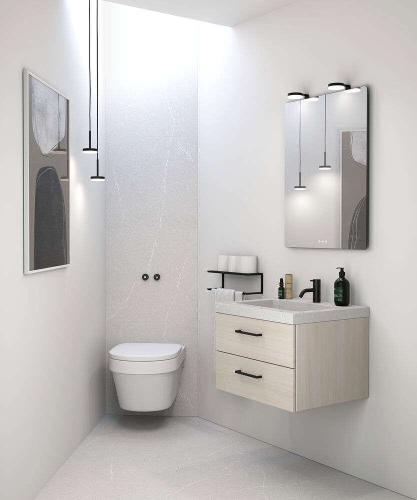 Dansani Calidris 2-laatikollinen allaskaappi on kaunis yhdistelmä tyyliä ja toiminnallisuutta kylpyhuoneeseesi. Allaskaapin minimalistinen muotoilu ja selkeät linjat lisäävät hienostunutta estetiikkaa kylpyhuoneesi ympäristöön. Kaksi tilavaa laatikkoa tarjoavat käytännöllistä säilytystilaa, mutta niiden avulla voit myös pitää kylpyhuoneesi siistinä ja järjestyksessä. Dansani Calidris 2-laatikollinen allaskaappi, jossa on keskitytty sekä toiminnallisuuteen että muotoiluun, on ihanteellinen valinta niille, jotka haluavat tyylikkään ja hyvin organisoidun ratkaisun kylpyhuoneeseen.  Huomautus: Tammella ja valinnaisella värillä varustetuista tuotteista peritään käynnistysmaksu (BI1). Maksetaan kerran tammea ja valinnaista väriä kohti tuotteiden lukumäärästä riippumatta. Muista lisätä kylpyhuonekalusteisiisi pieniä käytännöllisiä asioita, joista nautit päivittäin. Esimerkiksi valot laatikoihin ja kaappeihin, sisäänrakennetut pistorasiat ja kalusteiden alla olevat himmennettävät tunnistinvalot, jotka ohjaavat yöllisiä kylpyhuonekäyntejä. Vaihtoehdot tilataan samaan aikaan kalusteiden kanssa.