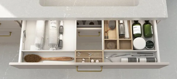 Kuvittele kylpyhuoneeseesi kaappi, joka on sekä kaunis että hyödyllinen - se on Dansani Calidris 2-laatikollinen allaskaappi. Ja tässä saat jopa allaskaapin, jossa on korkeampi alalaatikko, jolloin saat kylpyhuoneeseesi runsaasti säilytystilaa. Kaapissa on minimalistinen ja yksinkertainen muotoilu, joka antaa kylpyhuoneellesi modernin ilmeen. Kaksi suurta laatikkoa eivät ole vain loistavia tavaroiden säilyttämiseen, vaan ne auttavat myös pitämään kylpyhuoneesi siistinä ja puhtaana. Jos siis haluat siistin kylpyhuoneen, Dansani Calidris 2-laatikollinen allaskaappi on oikea valinta sinulle. Huomautus: Tammella ja valinnaisella värillä varustetuista tuotteista peritään käynnistysmaksu (BI1). Maksetaan kerran tammea ja valinnaista väriä kohti tuotteiden lukumäärästä riippumatta. Muista lisätä kylpyhuonekalusteisiisi pieniä käytännöllisiä asioita, joista nautit päivittäin. Esimerkiksi valot laatikoihin ja kaappeihin, sisäänrakennetut pistorasiat ja kalusteiden alla olevat himmennettävät tunnistinvalot, jotka ohjaavat yöllisiä kylpyhuonekäyntejä. Vaihtoehdot tilataan samaan aikaan kalusteiden kanssa.