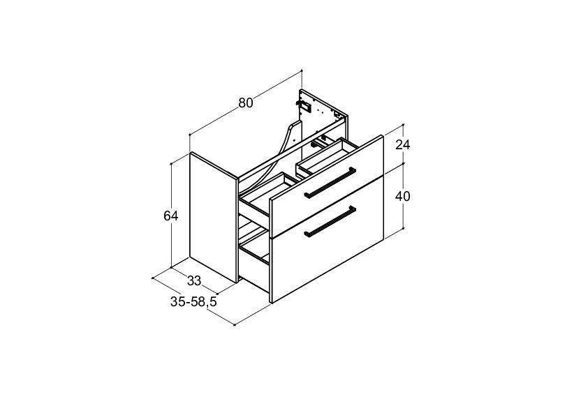 Leveän muotoilunsa ja kapean syvyytensä ansiosta tämä turhamaisuuskaappi sopii täydellisesti tiloihin, joissa haluat lisää pinta-alaa ja säilytystilaa viemättä liikaa tilaa. Kahdessa laatikossa on runsaasti tilaa - alalaatikko on ihanteellinen esimerkiksi pyyhkeille ja isommille pulloille, kun taas ylälaatikossa säilytetään kaikki pieni. Muotoilu on paitsi kaunis myös käytännöllinen: katkaistu takareuna mahdollistaa viemäriputkien vaivattoman mahtumisen, ja alumiiniprofiili estää pienten tavaroiden putoamisen kaapin taakse. Pehmeästi sulkeutuvat laatikot ja säädettävät saranat varmistavat, että kalusteita on yhtä mukava käyttää kuin katsella. Tyylikäs ratkaisu moderniin kylpyhuoneeseen - tanskalaista laatua, joka on tehty jokapäiväiseen käyttöön.