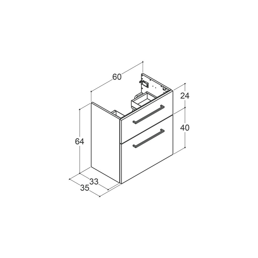 Tässä tyylikkäässä turhamaisuuskaapissa yhdistyvät kompakti koko ja suuri toiminnallisuus. 60 cm:n leveyden ansiosta saat enemmän tilaa kylpyhuoneen ilmavasta tunnelmasta tinkimättä. Kaksi täysin ulosvedettävää laatikkoa tarjoavat runsaasti säilytysmahdollisuuksia, ja säädettävä liukujärjestelmä takaa hellävaraisen ja hiljaisen sulkeutumisen - joka kerta. Ylimmässä laatikossa on leikkaus, johon on helppo asentaa vesilukko. Täydellinen niille, jotka haluavat sekä muotoilua että toiminnallisuutta arkeen.