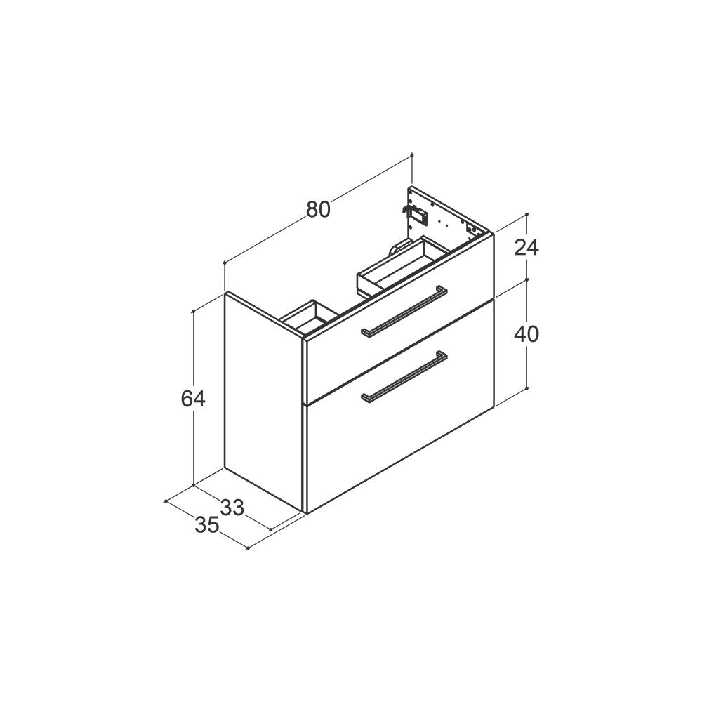 Tilava ja tyylikäs huonekalu, jossa toiminnallisuus ja estetiikka kulkevat käsi kädessä. Leveys 80 cm ja kaksi suurta laatikkoa, joten sinulla on runsaasti tilaa henkilökohtaisille tuotteillesi ja kylpyhuonetarvikkeillesi. Laadukkaat liukukiskot takaavat, että laatikot sulkeutuvat hiljaa ja tyylikkäästi - ja ne voidaan vetää kokonaan ulos, jolloin koko sisältöön pääsee helposti käsiksi. Kaapin ylimmässä laatikossa on leikkaus vesilukkoa varten. Tanskalaista muotoilua korkeassa laadussa - niille, jotka eivät halua tehdä kompromisseja.