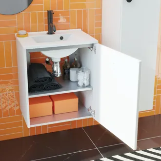 Dansani Mido+ -ovellinen allaskaappi on vain 35 cm syvä, joten se sopii erinomaisesti niille, joilla on vain vähän tilaa kylpyhuoneessa. Dansani Mido+ on erittäin edullinen, ja vaikka se on yksi edullisimmista sarjoistamme, muotoilusta tai laadusta ei ole tingitty. Käytännöllisten ovien takana on runsaasti tilaa. Kaikissa Mido+-kaapeissa on klassinen Base-kahva, kromi. Voit valita eri kahvan, jos haluat erilaisen ilmeen, mutta muista, että se on tilattava yhdessä kalusteidesi kanssa.