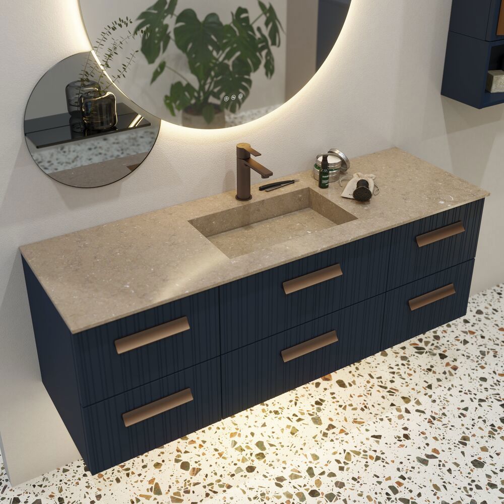 Angular altaalla saat paitsi elegantin ja kulmikkaan muotoilun, myös mahdollisuuden saada altaan, joka sopii täydellisesti kylpyhuoneeseesi. Allas voidaan räätälöidä mittojen mukaan, mikä tarkoittaa, että se voidaan mukauttaa tarkasti tarpeidesi ja tilan mittojen mukaan. Tämä joustavuus tekee Angularista täydellisen valinnan, kun haluat altaan, joka on sekä toimiva että designiltaan optimaalisesti integroitu kylpyhuoneen sisustukseen. Altaat on kehitetty yhteistyössä Cosentinon kanssa, ja ne ovat saatavilla sekä klassisissa Silestone-somisteissa että uudessa, kestävän Trilium-viimeistelyn Dektonissa. Trilium erottuu raakana, laatta-tyylisenä ulkonäönään ja se valmistetaan jopa 80 % kierrätetyistä materiaaleista, mikä antaa altaalle lisäystävän ympäristöystävällisen kosketuksen. Tyylikäs suunnittelufilosofia sisältää kaltevan altaan, joka ohjaa veden tehokkaasti piilotettuun viemäriin, luoden samalla tyylikkään ja käytännöllisen designin. Silestone ja Dekton -materiaalit eivät ole vain kauniita, vaan myös kestäviä, koska niitä valmistetaan uusiutuvalla energialla ja kierrätetään 99 % vedestä tuotannossa.
