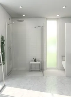 Nämä kiinteät seinät on suunniteltu siten, että ne luovat tilavan ja tyylikkään suihkutilan, joka voidaan mukauttaa täysin henkilökohtaiseen tyyliisi ja kylpyhuoneen sisustukseen. Kiinteät seinämme voidaan yhdistää muihin suihkuseiniin tai suihkuoviin, jolloin voit luoda ratkaisun, joka sopii täydellisesti kylpyhuoneeseesi. Ehkä sinulla on paljon tilaa ja voit luoda walk-in-suihkun? Tai kenties haluat yhdistää kiinteän seinän heilurioven kanssa vakaaksi ja turvalliseksi ratkaisuksi? Olipa valintasi mikä tahansa, voit löytää sinulle parhaiten sopivan ratkaisun. Kiinteiden seinien lasi on käsitelty EasyCare-pinnoitteella, joka on vettä ja saippuajäämiä hylkivä erikoispinnoite, joka helpottaa puhdistusta huomattavasti. Lasi on myös karkaistu, ja vahva rakenne ja vankat materiaalit takaavat, että seinät ovat vakaita ja luotettavia.