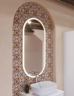 Hoop-ovaalin peilin tyylikäs ja moderni ilme syntyy sen ainutlaatuisen kelluvan kehykseen ansiosta. Kaareva sisäkehyksen rakenne ohjaa valoa tasaisesti eteenpäin, luoden pehmeää, hajautettua valoa, joka tarjoaa miellyttävän valaistuksen ilman häikäisyä. Peilissä on valon säädin, jonka avulla voit helposti säätää kirkkauden tarpeesi mukaan, olipa kyseessä meikki tai rentouttava tunnelma. Hoop-peili on vakiona mustalla kehyksellä, mutta saatavilla on myös erikoisvärinen ulkokehys, joka sopii kylpyhuoneeseesi. Voit ostaa peiliin valmiiksi asennetun lämmittimen, joka estää peilin huurtumisen suihkun aikana. Huomautus: Valinnaisen värin sisältävistä tuotteista peritään käynnistysmaksu (BI1). Se maksetaan kerran valinnaisväriä kohden tuotteiden lukumäärästä riippumatta.