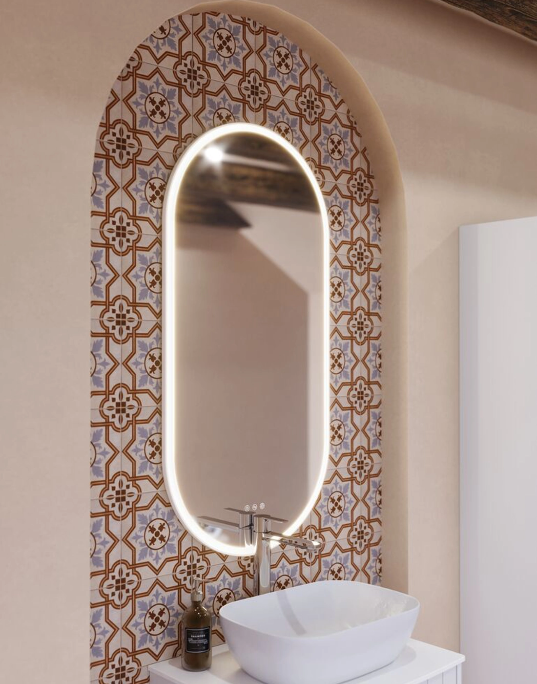 Hoop-ovaalin peilin tyylikäs ja moderni ilme syntyy sen ainutlaatuisen kelluvan kehykseen ansiosta. Kaareva sisäkehyksen rakenne ohjaa valoa tasaisesti eteenpäin, luoden pehmeää, hajautettua valoa, joka tarjoaa miellyttävän valaistuksen ilman häikäisyä. Peilissä on valon säädin, jonka avulla voit helposti säätää kirkkauden tarpeesi mukaan, olipa kyseessä meikki tai rentouttava tunnelma. Hoop-peili on vakiona mustalla kehyksellä, mutta saatavilla on myös erikoisvärinen ulkokehys, joka sopii kylpyhuoneeseesi. Voit ostaa peiliin valmiiksi asennetun lämmittimen, joka estää peilin huurtumisen suihkun aikana. Huomautus: Valinnaisen värin sisältävistä tuotteista peritään käynnistysmaksu (BI1). Se maksetaan kerran valinnaisväriä kohden tuotteiden lukumäärästä riippumatta.