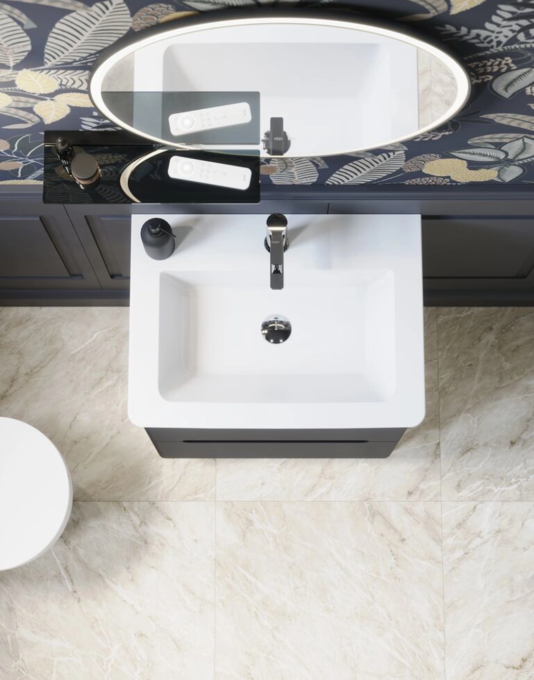 Hoop-peili on saanut inspiraationsa kelluvista kehyksistä, joissa kehys leijuu vapaasti peilin ympärillä ja luo dynaamisen ja kevyen estetiikan. Kaareva sisäkehyksen rakenne ohjaa valoa takaa eteenpäin, luoden pehmeää, häikäisemätöntä valoa, joka leviää tasaisesti huoneeseen. Sisäänrakennetun valaistuksen säätimen avulla voit helposti säätää valon kirkkauden tarpeen mukaan, jolloin voit luoda täydellisen ilmapiirin – kirkkaasta meikkivalosta pehmeään valoon rentoutumiseen. Hoop-peili tulee vakiona mustalla kehystöllä, mutta voit valita, että ulkokehys lakataan erikoisvärillä, joka sopii sisustukseesi. Huomautus: Valinnaisen värin sisältävistä tuotteista peritään käynnistysmaksu (BI1). Se maksetaan kerran valinnaisväriä kohden tuotteiden lukumäärästä riippumatta.