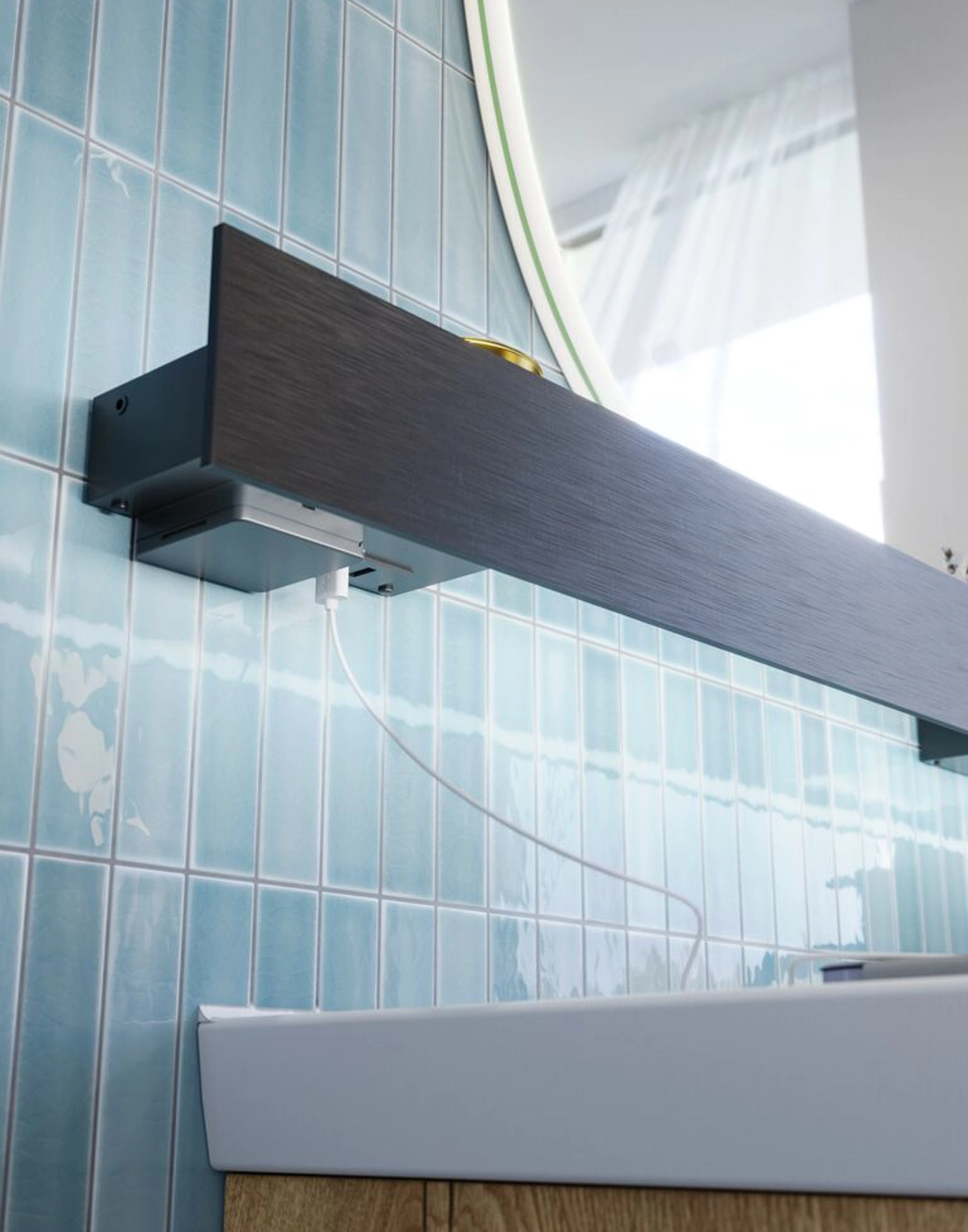 Illumi hylly valolla, pistorasia, 2 x USB ja pyyheteline