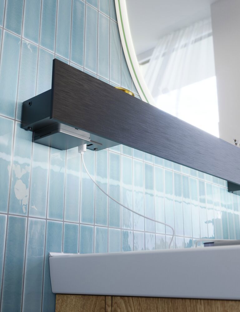 Illumi hylly valolla, pistorasia, 2 x USB ja pyyheteline