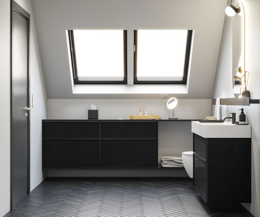 Illumi on ainutlaatuinen hylly, jolle on tunnusomaista sen musta alumiinireuna ja tummat sävytetyt lasihyllyt. Ne on luotu täydentämään epäsymmetristä sarjaa, jossa Illumi ulottuu huonekalujen ulkopuolelle ja luo design-elementin katseenvangitsijana. Illumi-hylly ei ole vain visuaalinen elementti, sillä siinä on myös käytännöllisiä ominaisuuksia, jotka tekevät siitä ihanteellisen kylpyhuoneeseen. Sävytetyt lasipalat voidaan irrottaa, jotta voit käyttää Illumia pyyhetelineenä ja hyllyssä on valot, jotka tuovat kauniin valon pesualtaan päälle. Hyllyssä on jopa pistorasia, joten voit helposti ladata sähköhammasharjasi tai käyttää parranajokonettasi pesualtaan ääressä.  Illumi-hylly yhdistää ylellisyyttä ja helppokäyttöisyyttä kylpyhuoneeseesi. Tämä hylly on enemmän kuin pelkkä säilytysratkaisu; se on huolella valittu suunnittelukokemus, jossa estetiikka ja toiminnallisuus yhdistyvät luoden kylpyhuoneympäristön, joka on sekä kaunis että käytännöllinen.