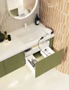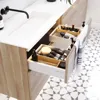 Kaapit ilman viemärileikettä ja integroidulla kahvalla tarjoavat käytännöllisen ratkaisun kahdella tilavalla laatikolla, jotka sopivat erinomaisesti kylpyhuonetarvikkeidesi säilyttämiseen. Korkeudeltaan 48 cm nämä kaapit ovat ihanteellisia moderneille kylpyhuoneille. Ne voidaan helposti yhdistää allaskaappiin ja työtasoon, jossa on pöydälle asetettava pesuallas, luoden virtaviivaista ilmettä. Integroidun kahvaratkaisun ansiosta kaappi näyttää minimalistiselta ja elegantilta. Näillä kaapeilla saat runsaasti säilytystilaa sekä mahdollisuuden valita eri väreistä, jotka sopivat tyyliisi. Huomautus: Valinnaisen värin sisältävistä tuotteista peritään käynnistysmaksu (BI1). Se maksetaan kerran valinnaisväriä kohden tuotteiden lukumäärästä riippumatta. Muista lisätä kylpyhuonekalusteisiisi pieniä käytännöllisiä asioita, joista nautit päivittäin. Esimerkiksi valot laatikoihin ja kaappeihin, sisäänrakennetut pistorasiat ja kalusteiden alla olevat himmennettävät tunnistinvalot, jotka ohjaavat yöllisiä kylpyhuonekäyntejä. Vaihtoehdot tilataan samaan aikaan kalusteiden kanssa.