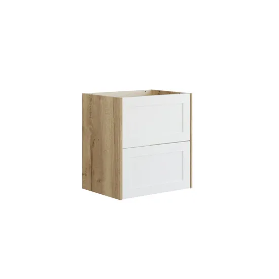 Anna kylpyhuoneellesi elegantti ilme klassisella rungolla ja kahdella laatikolla varustetulla turhamaisuuskaapilla. Kehysrintamalla lisätään modernia ja tyylikästä ilmettä, joka sopii mihin tahansa sisustukseen. Kaapin kaksi laatikkoa tarjoavat runsaasti säilytystilaa, mikä auttaa sinua pitämään kirjaa kylpyhuoneen tärkeimmistä tavaroista. Käytätpä tätä kaappia sitten työtason päällä tai yhdessä turhamaisuuskaapin kanssa, se luo kylpyhuoneeseesi järjestäytyneen ja tyylikkään ilmapiirin. Huomautus: Valinnaisen värin sisältävistä tuotteista peritään käynnistysmaksu (BI1). Se maksetaan kerran valinnaisväriä kohden tuotteiden lukumäärästä riippumatta. Muista lisätä kylpyhuonekalusteisiisi pieniä käytännöllisiä asioita, joista nautit päivittäin. Esimerkiksi valot laatikoihin ja kaappeihin, sisäänrakennetut pistorasiat ja kalusteiden alla olevat himmennettävät tunnistinvalot, jotka ohjaavat yöllisiä kylpyhuonekäyntejä. Vaihtoehdot tilataan samaan aikaan kalusteiden kanssa.
