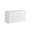 Anna kylpyhuoneellesi elegantti ilme klassisella rungolla ja kahdella laatikolla varustetulla turhamaisuuskaapilla. Kehysrintamalla lisätään modernia ja tyylikästä ilmettä, joka sopii mihin tahansa sisustukseen. Kaapin kaksi laatikkoa tarjoavat runsaasti säilytystilaa, mikä auttaa sinua pitämään kirjaa kylpyhuoneen tärkeimmistä tavaroista. Käytätpä tätä kaappia sitten työtason päällä tai yhdessä turhamaisuuskaapin kanssa, se luo kylpyhuoneeseesi järjestäytyneen ja tyylikkään ilmapiirin. Huomautus: Valinnaisen värin sisältävistä tuotteista peritään käynnistysmaksu (BI1). Se maksetaan kerran valinnaisväriä kohden tuotteiden lukumäärästä riippumatta. Muista lisätä kylpyhuonekalusteisiisi pieniä käytännöllisiä asioita, joista nautit päivittäin. Esimerkiksi valot laatikoihin ja kaappeihin, sisäänrakennetut pistorasiat ja kalusteiden alla olevat himmennettävät tunnistinvalot, jotka ohjaavat yöllisiä kylpyhuonekäyntejä. Vaihtoehdot tilataan samaan aikaan kalusteiden kanssa.