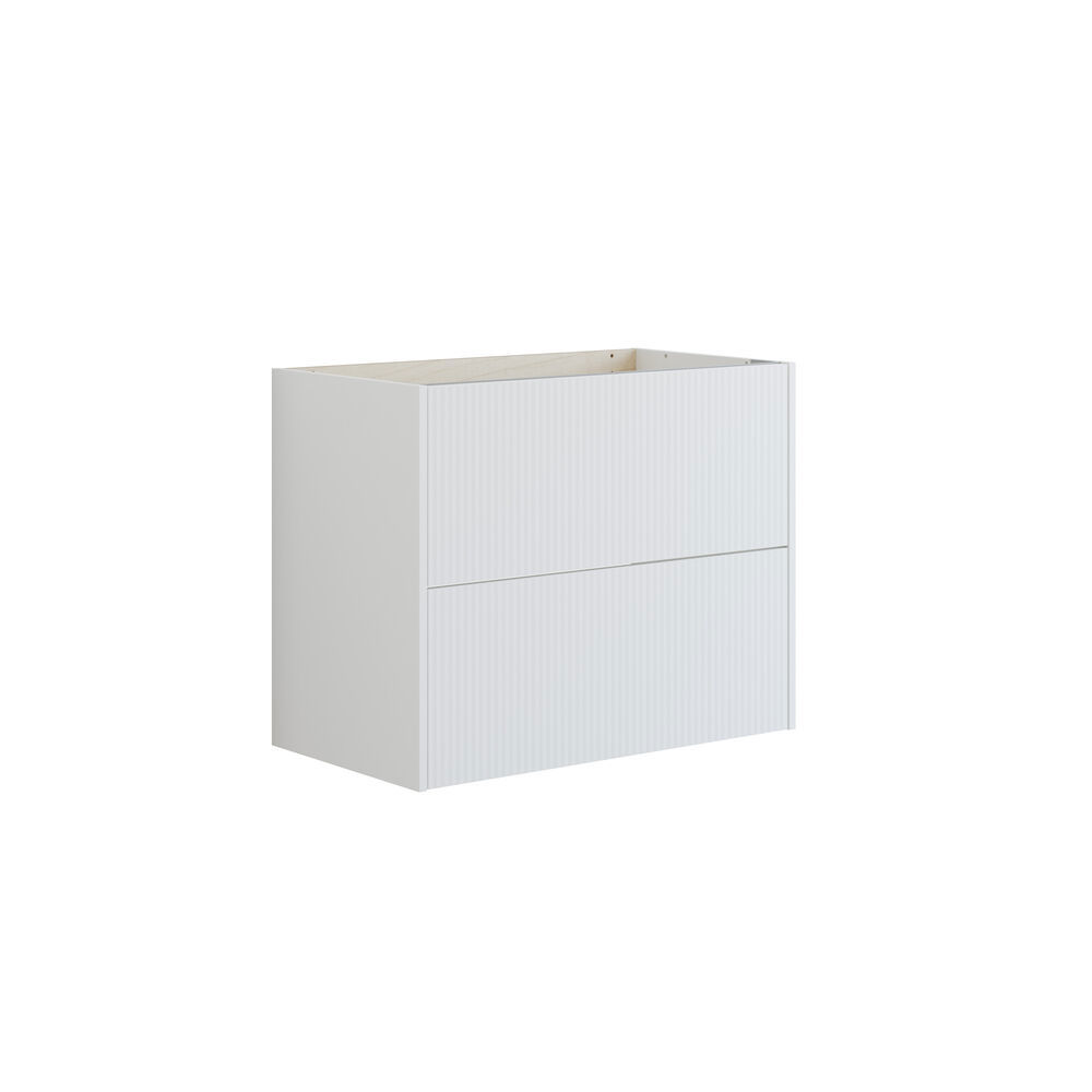 Muuttaa kylpyhuoneesi tämän tyylikkään, raidallisella etusivulla ja kahdella tilavalla laatikolla varustetun turhamaisuuskaapin avulla. Pystysuorat raidat luovat modernia leikkiä pintaan ja antavat kalusteelle ainutlaatuisen ja eksklusiivisen ilmeen. Kahden tilavan laatikon ansiosta saat optimaalista säilytystilaa kaikille kylpyhuonetarvikkeillesi, joten voit helposti järjestää arjen. Tyylikkään muotoilunsa ansiosta allaskaappi sopii erinomaisesti moderniin kylpyhuoneeseen. Voit sijoittaa työtason päälle minimalistista ilmettä varten tai yhdistää sen turhamaisuuskaapin kanssa harmonisen yleisilmeen aikaansaamiseksi. Pöytäkaappi on saatavana valkoisena, hiekanvärisenä ja vaaleansinisenä - kolme väriä, jotka kukin tukevat henkilökohtaista tyyliä: klassinen ja ajaton valkoisena, lämmin ja rauhallinen hiekanvärisenä tai raikas ja kevyt vaaleansinisenä. Kaappi, jossa yhdistyvät toiminnallisuus ja hienostunut muotoilu ja joka antaa kylpyhuoneellesi eksklusiivisen ilmeen. Muista lisätä kylpyhuonekalusteisiisi pieniä käytännöllisiä asioita, joista nautit päivittäin. Esimerkiksi valot laatikoihin ja kaappeihin, sisäänrakennetut pistorasiat ja kalusteiden alla olevat himmennettävät tunnistinvalot, jotka ohjaavat yöllisiä kylpyhuonekäyntejä. Vaihtoehdot tilataan samaan aikaan kalusteiden kanssa.