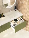 Dansani Calidris 2-laatikolliset kaapit ovat täydellinen ratkaisu niille, jotka haluavat kylpyhuoneeseensa älykästä ja tyylikästä säilytystilaa. Kaapissa on harkittua tanskalaista muotoilua, ja nämä kaapit on suunniteltu maksimoimaan tila tinkimättä toiminnallisuudesta tai estetiikasta. Kahdessa tilavassa laatikossa voit helposti järjestää ja säilyttää hygieniatuotteet, pyyhkeet ja kylpyhuonetarvikkeet siististi ja järjestyksessä. Kaappien muotoilu on yksinkertaista ja ajatonta, joten ne ovat tyylikäs lisä mihin tahansa kylpyhuoneeseen. Huomautus: Tammella ja valinnaisella värillä varustetuista tuotteista peritään käynnistysmaksu (BI1). Maksetaan kerran tammea ja valinnaista väriä kohti tuotteiden lukumäärästä riippumatta. Muista lisätä kylpyhuonekalusteisiisi pieniä käytännöllisiä asioita, joista nautit päivittäin. Esimerkiksi valot laatikoihin ja kaappeihin, sisäänrakennetut pistorasiat ja kalusteiden alla olevat himmennettävät tunnistinvalot, jotka ohjaavat yöllisiä kylpyhuonekäyntejä. Vaihtoehdot tilataan samaan aikaan kalusteiden kanssa.