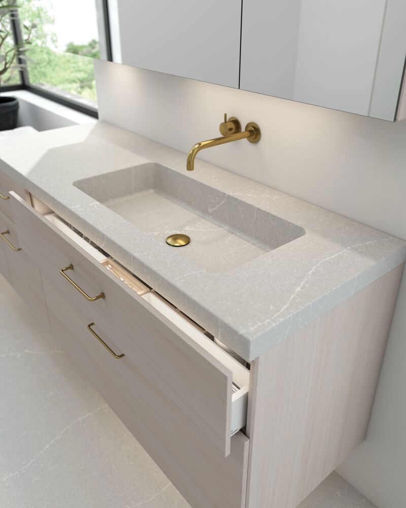 Dansani Calidris -kaapit ovat fiksu ratkaisu kylpyhuoneisiin, joissa on vähän tilaa. Vain 16 cm:n kapean syvyyden ansiosta säilytystilaa riittää pieniinkin kylpyhuoneisiin. Näissä kaapeissa yhdistyvät tilaa säästävä muotoilu sekä toiminnallisuus ja tyyli, joten ne sopivat erinomaisesti hygieniatuotteiden, shampoon, voiteiden ja kaiken muun kylpyhuoneessa tarvitsemasi järjestämiseen. Kylpyhuoneen koosta riippumatta Dansani Calidris -kaapit lisäävät käytännöllisen ja tyylikkään säilytysratkaisun. Huomautus: Tammella ja valinnaisella värillä varustetuista tuotteista peritään käynnistysmaksu (BI1). Maksetaan kerran tammea ja valinnaista väriä kohti tuotteiden lukumäärästä riippumatta. Muista lisätä kylpyhuonekalusteisiisi pieniä käytännöllisiä asioita, joista nautit päivittäin. Esimerkiksi valot laatikoihin ja kaappeihin, sisäänrakennetut pistorasiat ja kalusteiden alla olevat himmennettävät tunnistinvalot, jotka ohjaavat yöllisiä kylpyhuonekäyntejä. Vaihtoehdot tilataan samaan aikaan kalusteiden kanssa.