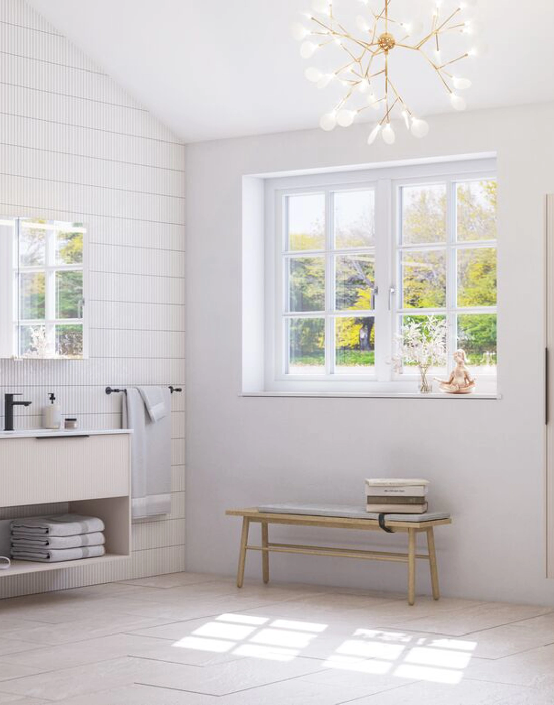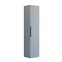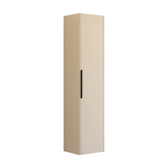 Tämässä korkeassa kaapissa yhdistyvät käännettävän oven joustavuus ja tyylikäs raidallinen etuosa, joka tuo modernin lisän kylpyhuoneeseesi. Sisällä on puuhylly ja 4 lasihyllyä, jotka tarjoavat runsaasti tilaa hygieniatuotteiden järjestämiseen. Kaappi on saatavana valkoisena, hiekanvärisenä tai vaaleansinisenä, ja asennetun kahvan ansiosta kaappi on heti käyttövalmis.