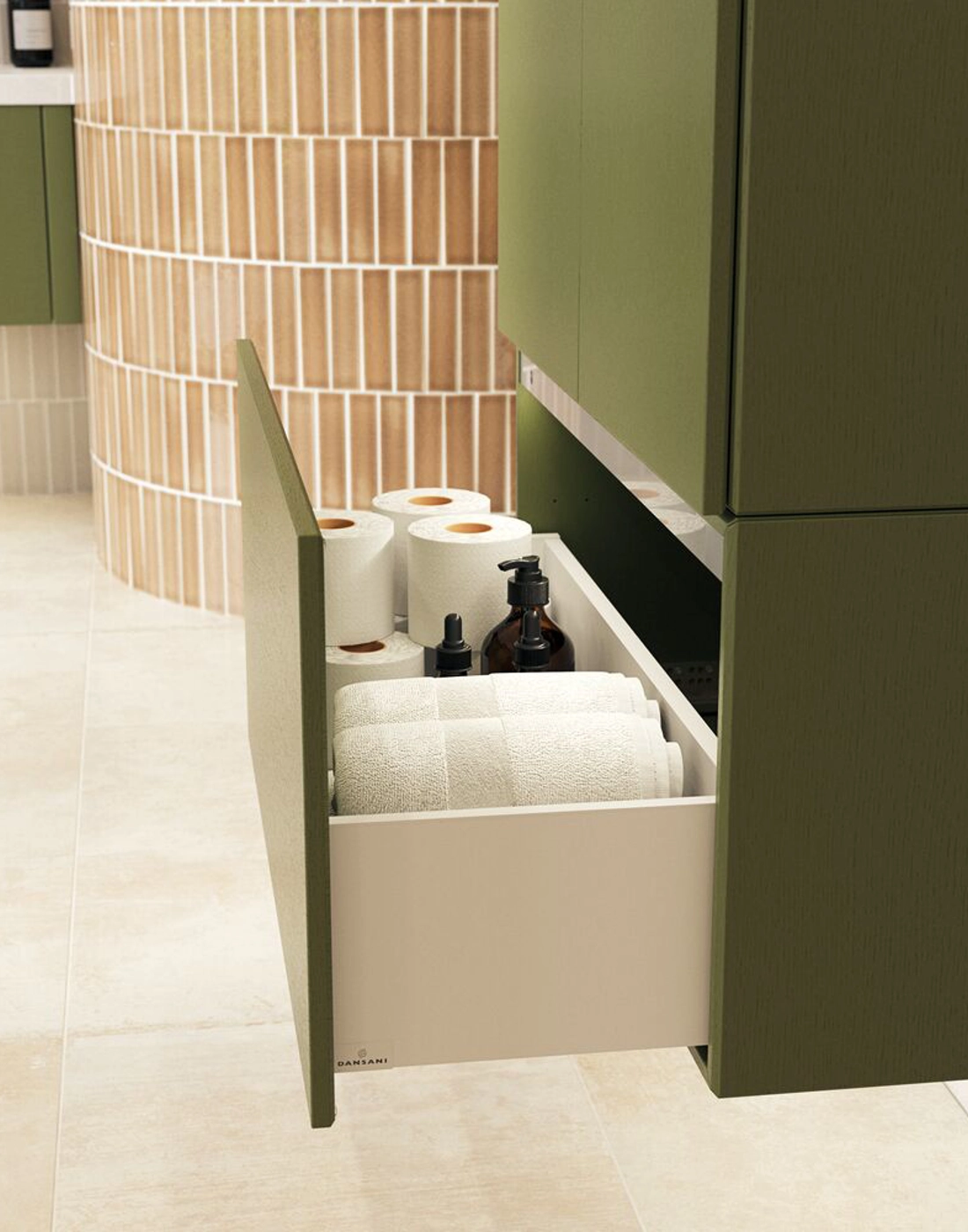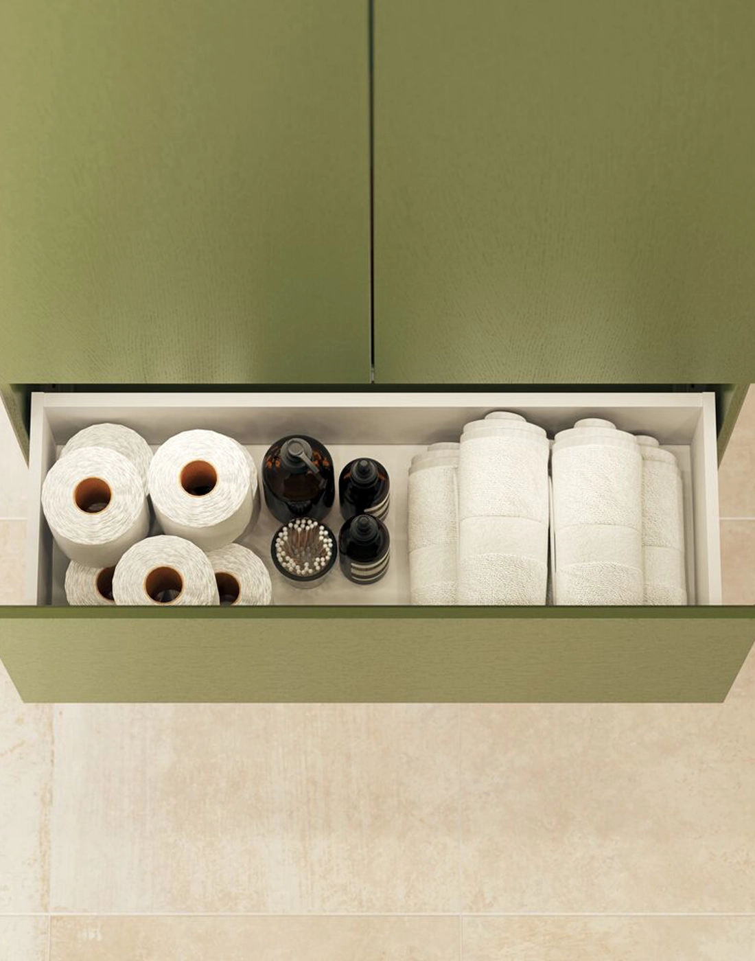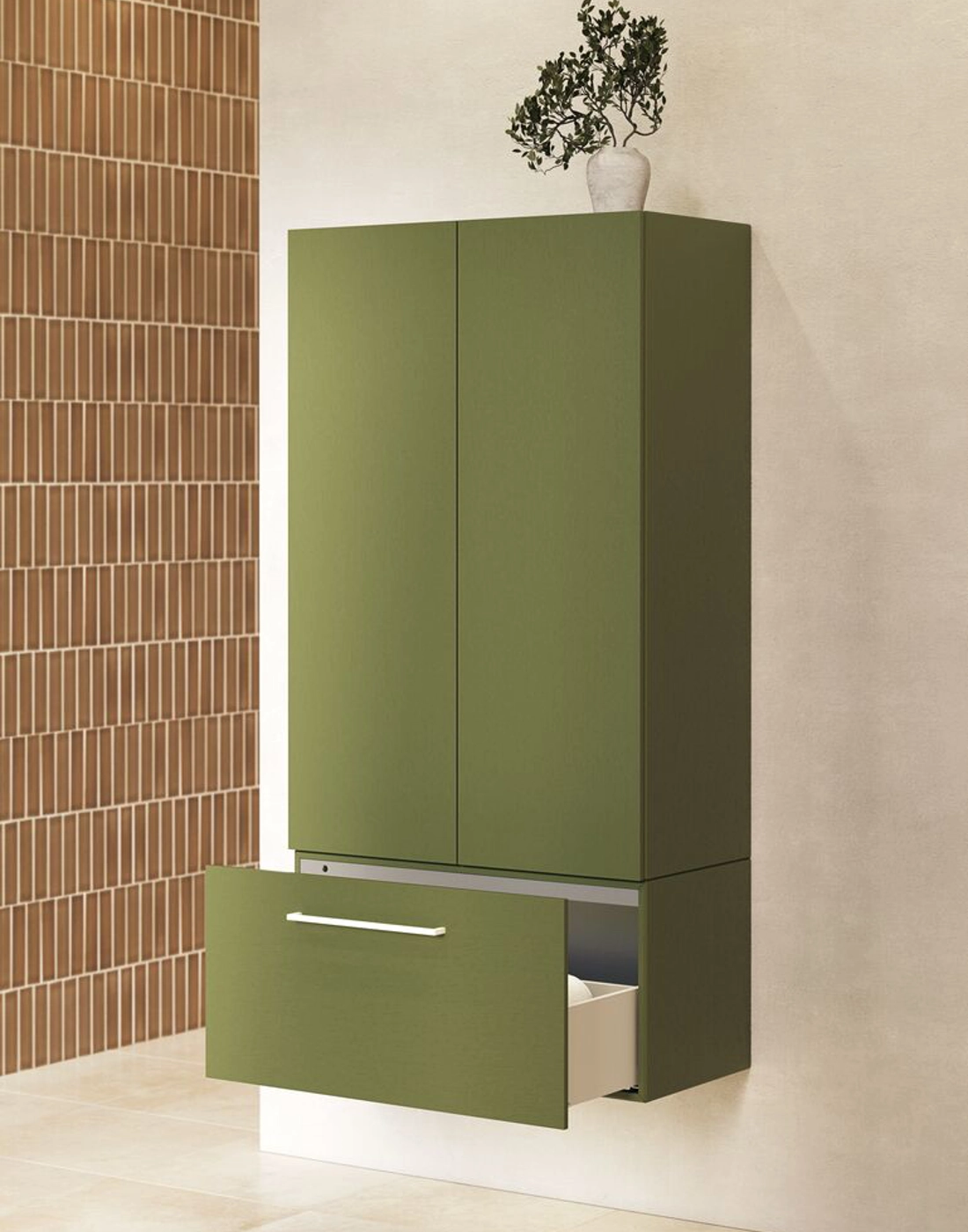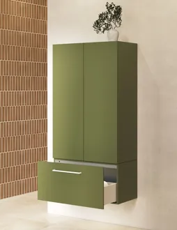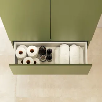 Kylpyhuoneen säilytyksestä tulee yksinkertaista ja tyylikästä Dansani Calidris -korkeilla kaapeilla. Nämä kaapit eivät ole vain toiminnallinen elementti, vaan myös esteettinen nautinto, joka sopii täydellisesti moderniin kylpyhuoneen sisustukseen. Älykkäiden hyllyjen ja lokeroiden ansiosta Calidris-korkeissa kaapeissa voit järjestellä kaiken pyyhkeistä ja hygieniatuotteista kauneustuotteisiin järjestelmällisesti. Korkeiden kaappien tyylikäs muotoilu ja selkeät linjat tuovat järjestyksen ja harmonian tunnetta kylpyhuoneen ympäristöön. Huomautus: Tammella ja valinnaisella värillä varustetuista tuotteista peritään käynnistysmaksu (BI1). Maksetaan kerran tammea ja valinnaista väriä kohti tuotteiden lukumäärästä riippumatta. Muista lisätä kylpyhuonekalusteisiisi pieniä käytännöllisiä asioita, joista nautit päivittäin. Esimerkiksi valot laatikoihin ja kaappeihin, sisäänrakennetut pistorasiat ja kalusteiden alla olevat himmennettävät tunnistinvalot, jotka ohjaavat yöllisiä kylpyhuonekäyntejä. Vaihtoehdot tilataan samaan aikaan kalusteiden kanssa.