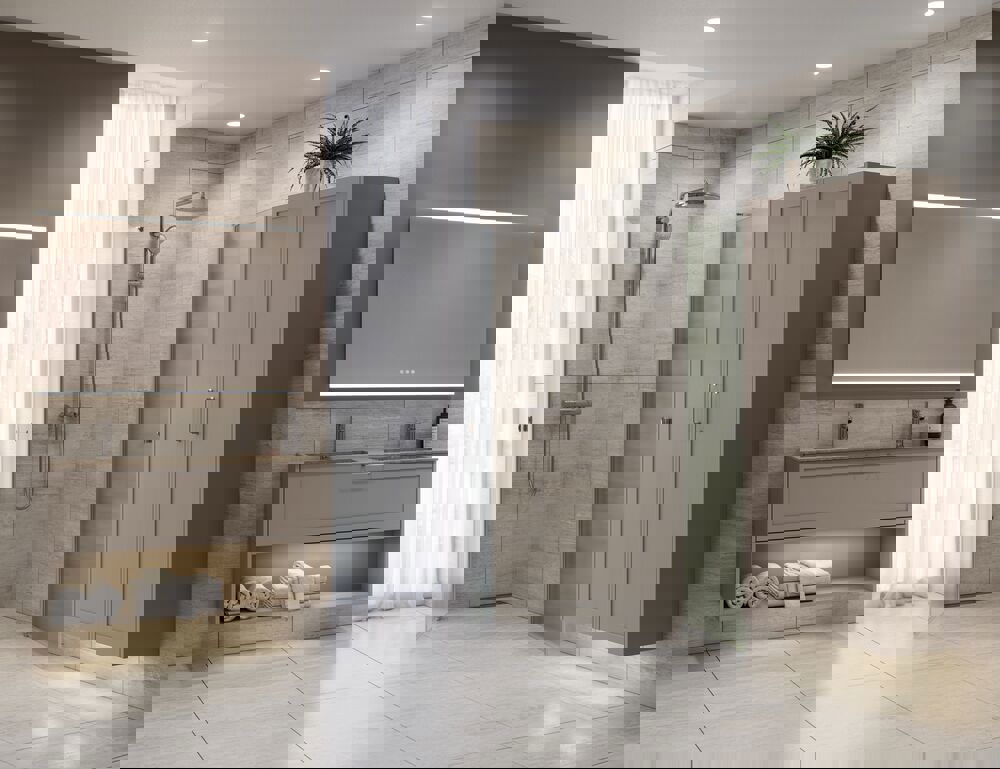 Luo ajaton ilme kylpyhuoneeseesi korkealla kaapilla, jossa on klassinen kehysovi. Kaapin korkeus on 176 cm ja syvyys 35 cm, joten se tarjoaa täydellisen säilytysratkaisun pyyhkeille, hygieniatuotteille ja muille tarvikkeille. Yksi puuhylly ja viisi lasihyllyä mahdollistavat tavaroiden järjestämisen niin, että ne ovat helposti saatavilla. Klassinen kehysovi lisää eleganssia ja sopii täydellisesti sekä perinteisiin että moderneihin kylpyhuoneisiin. Huomautus: Valinnaisen värin sisältävistä tuotteista peritään käynnistysmaksu (BI1). Se maksetaan kerran valinnaisväriä kohden tuotteiden lukumäärästä riippumatta. Muista lisätä kylpyhuonekalusteisiisi pieniä käytännöllisiä asioita, joista nautit päivittäin. Esimerkiksi valot laatikoihin ja kaappeihin, sisäänrakennetut pistorasiat ja kalusteiden alla olevat himmennettävät tunnistinvalot, jotka ohjaavat yöllisiä kylpyhuonekäyntejä. Vaihtoehdot tilataan samaan aikaan kalusteiden kanssa.