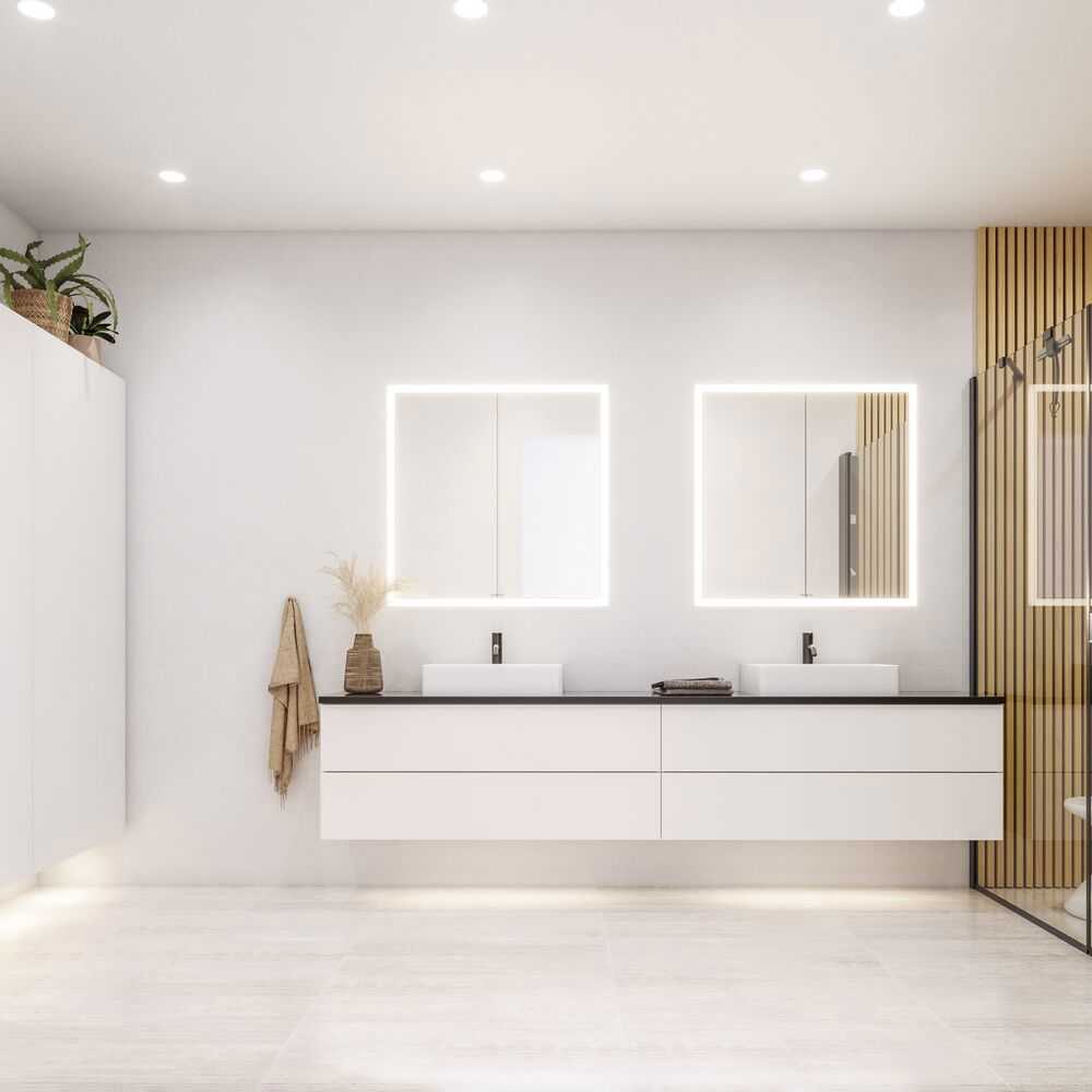 Lisää kylpyhuoneesi säilytysmahdollisuuksia 40 cm leveällä ja sileäpintaisella korkeakaapilla. Tätä tyylikästä korkeaa kaappia on saatavana versiona A, joka sisältää yhden puuhyllyn ja viisi lasihyllyä, tarjoten joustavuutta kylpyhuoneesi tavaroiden tehokkaaseen järjestämiseen. Ohut muotoilu sopii täydellisesti pienempiin tiloihin, ja sileä etuosa lisää modernia ja ajattoman tyylikästä ilmettä. Tämä korkea kaappi yhdistää toiminnallisuuden ja estetiikan, tehden kylpyhuoneestasi tyylikkäämmän ja järjestäytyneemmän. Huomautus: Valinnaisen värin sisältävistä tuotteista peritään käynnistysmaksu (BI1). Se maksetaan kerran valinnaisväriä kohden tuotteiden lukumäärästä riippumatta. Muista lisätä kylpyhuonekalusteisiisi pieniä käytännöllisiä asioita, joista nautit päivittäin. Esimerkiksi valot laatikoihin ja kaappeihin, sisäänrakennetut pistorasiat ja kalusteiden alla olevat himmennettävät tunnistinvalot, jotka ohjaavat yöllisiä kylpyhuonekäyntejä. Vaihtoehdot tilataan samaan aikaan kalusteiden kanssa.