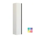Korkea kaappi integroidulla kahvalla versiossa B sopii niille, jotka haluavat sekä tyyliä että toiminnallisuutta. Yksi puuhylly ja kolme lyhennettyä lasihyllyä tekevät kaapista ihanteellisen kylpyhuonetarvikkeiden säilyttämiseen. Kolme puulokeroa oven sisäpuolella sopivat pienille esineille, ja kaksi lasihyllyä mahdollistavat suosikkituotteidesi esittelyn. Elegantti musta kahva luo näyttävän kontrastin ja tuo hienostunutta ilmettä kylpyhuoneeseesi. Huomautus: Valinnaisen värin sisältävistä tuotteista peritään käynnistysmaksu (BI1). Se maksetaan kerran valinnaisväriä kohden tuotteiden lukumäärästä riippumatta. Muista lisätä kylpyhuonekalusteisiisi pieniä käytännöllisiä asioita, joista nautit päivittäin. Esimerkiksi valot laatikoihin ja kaappeihin, sisäänrakennetut pistorasiat ja kalusteiden alla olevat himmennettävät tunnistinvalot, jotka ohjaavat yöllisiä kylpyhuonekäyntejä. Vaihtoehdot tilataan samaan aikaan kalusteiden kanssa.