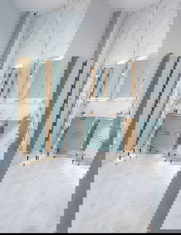Korkea kaappi klassisella kehysovella versiossa B on suunniteltu tarjoamaan sekä toiminnallisuutta että tyyliä. Yhdellä puuhyllyllä ja kolmella lyhennetyllä lasihyllyllä varustettu kaappi on ihanteellinen erilaisten kylpyhuonetarvikkeiden säilyttämiseen. Kolme puulokeroa oven sisäpuolella tarjoavat lisäsäilytystilaa pienille esineille, kuten kosmetiikalle ja lääkkeille, ja kaksi lasihyllyä sopivat täydellisesti suosikkituotteidesi esittelyyn. Klassinen tyyli kehysovessa lisää kylpyhuoneeseesi ajattoman ilmeen. Huomautus: Valinnaisen värin sisältävistä tuotteista peritään käynnistysmaksu (BI1). Se maksetaan kerran valinnaisväriä kohden tuotteiden lukumäärästä riippumatta. Muista lisätä kylpyhuonekalusteisiisi pieniä käytännöllisiä asioita, joista nautit päivittäin. Esimerkiksi valot laatikoihin ja kaappeihin, sisäänrakennetut pistorasiat ja kalusteiden alla olevat himmennettävät tunnistinvalot, jotka ohjaavat yöllisiä kylpyhuonekäyntejä. Vaihtoehdot tilataan samaan aikaan kalusteiden kanssa.
